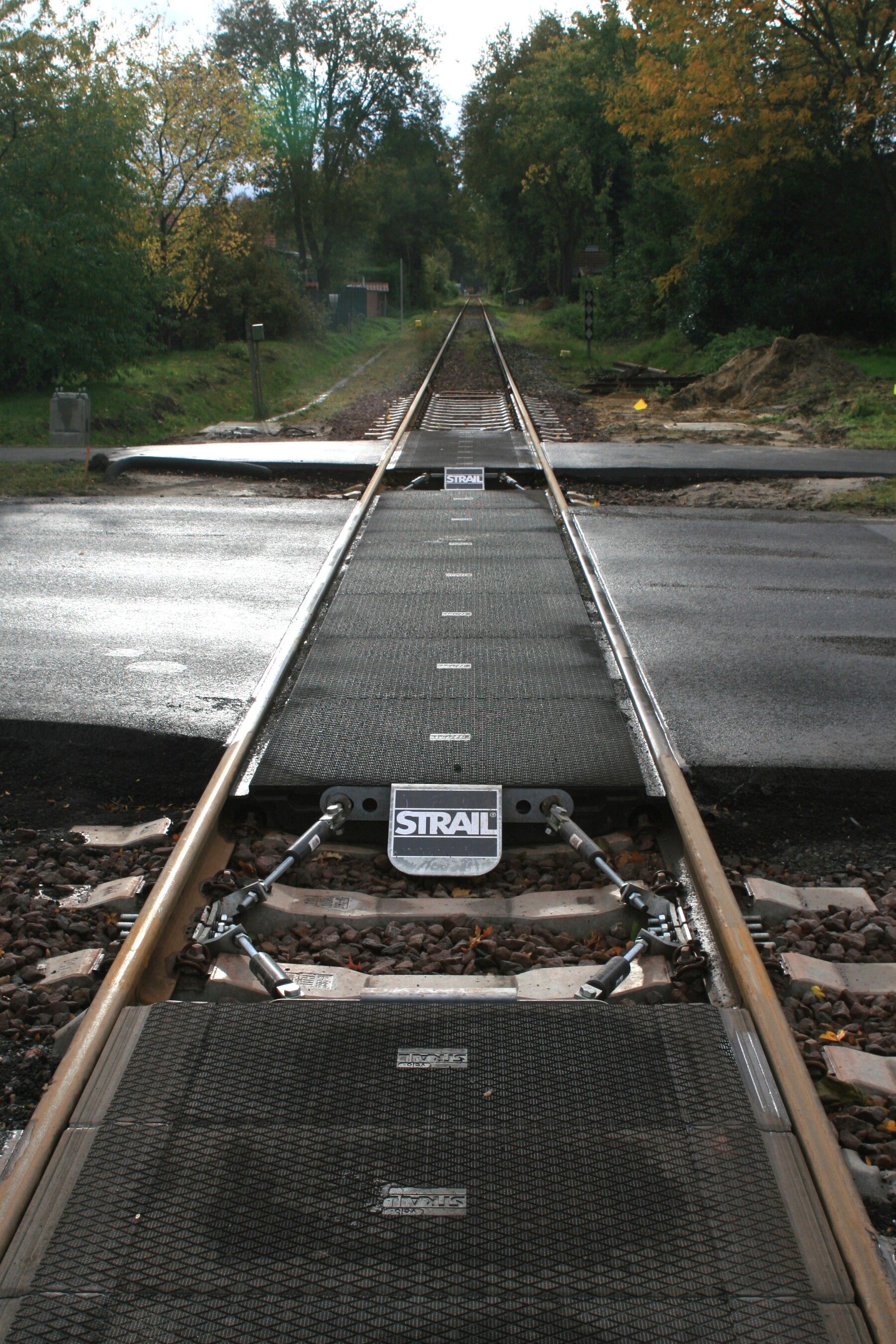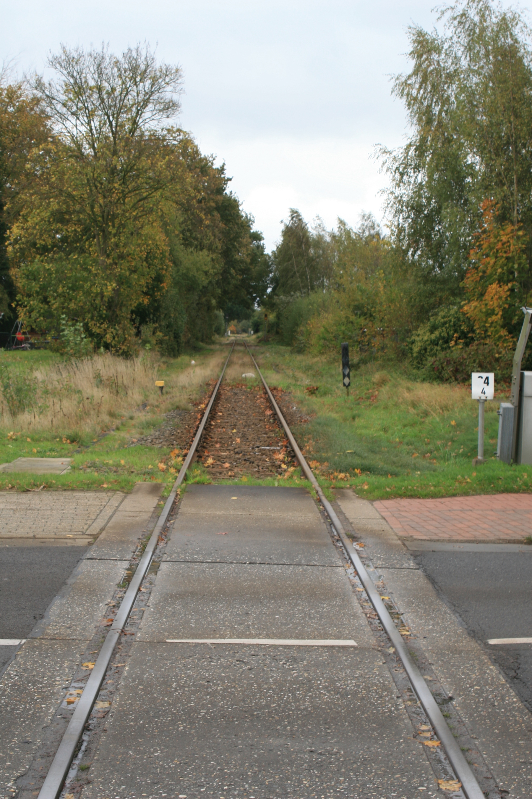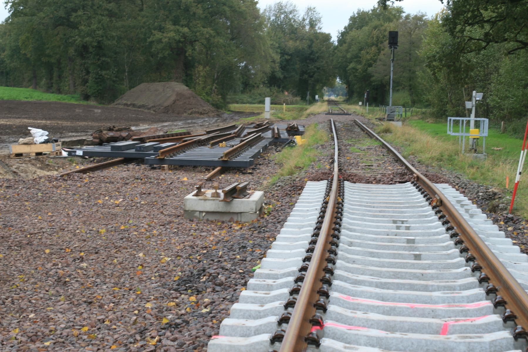2824-1740 Rechts het nog in te passen wissel 45W7 en zicht op de overweg Bu101 Fohlenstrasse
