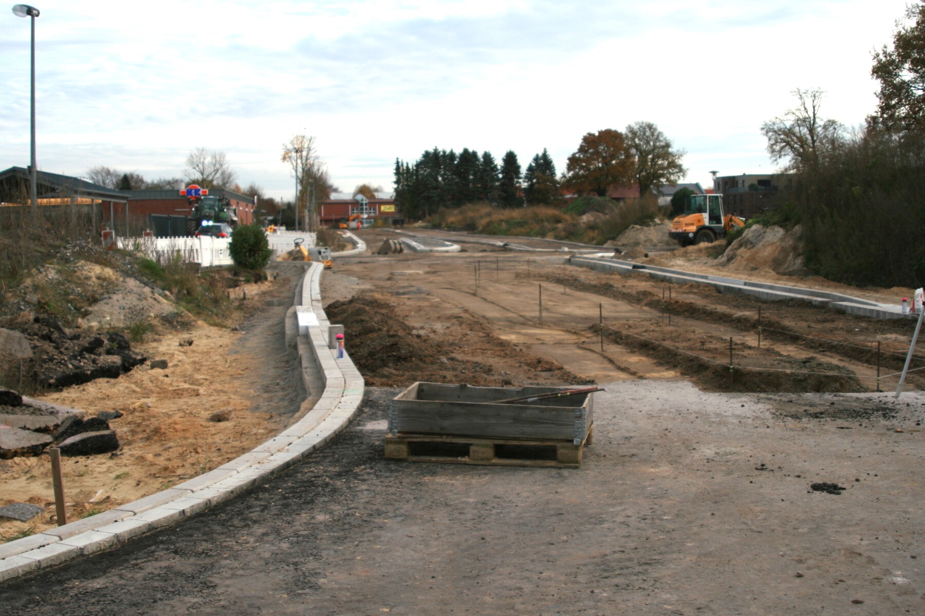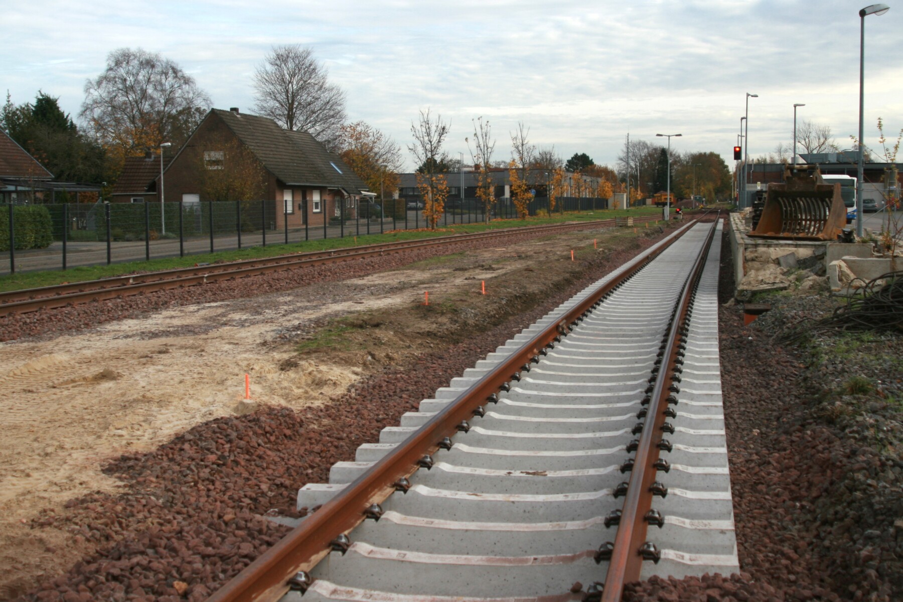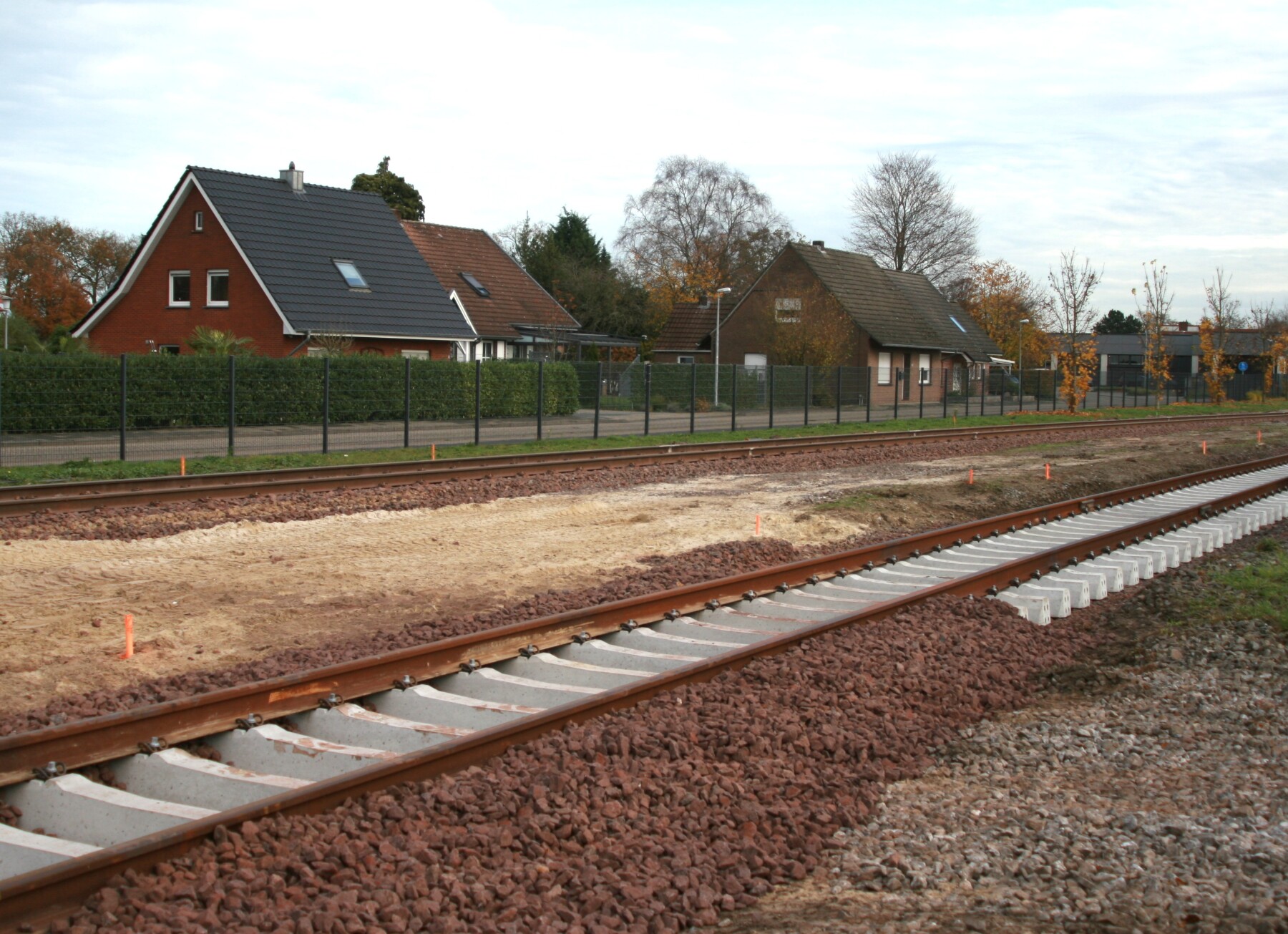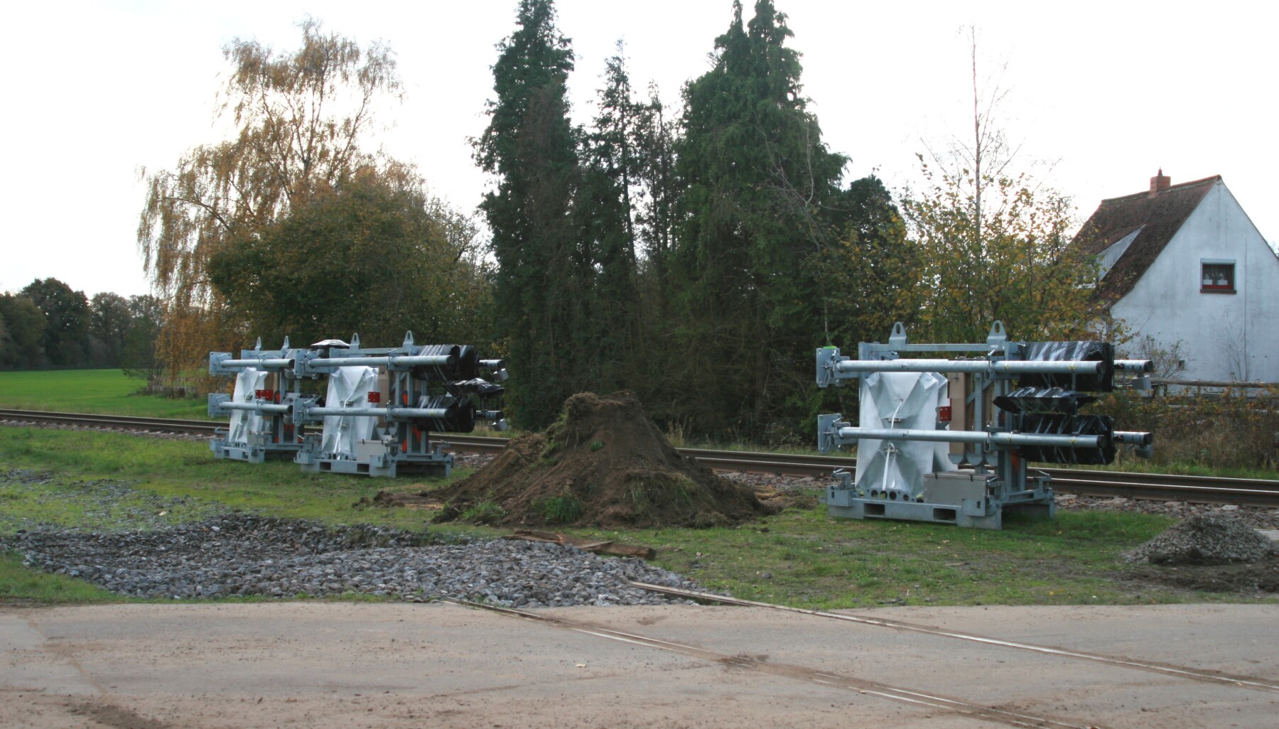 3037-2029 Het was mij opgevallen dat er de laatste weken bij de overweg in de Volzeler Feldstrasse druk gewerkt word. Er stond een “bagger” en er lag een grote hoop grond en ballast