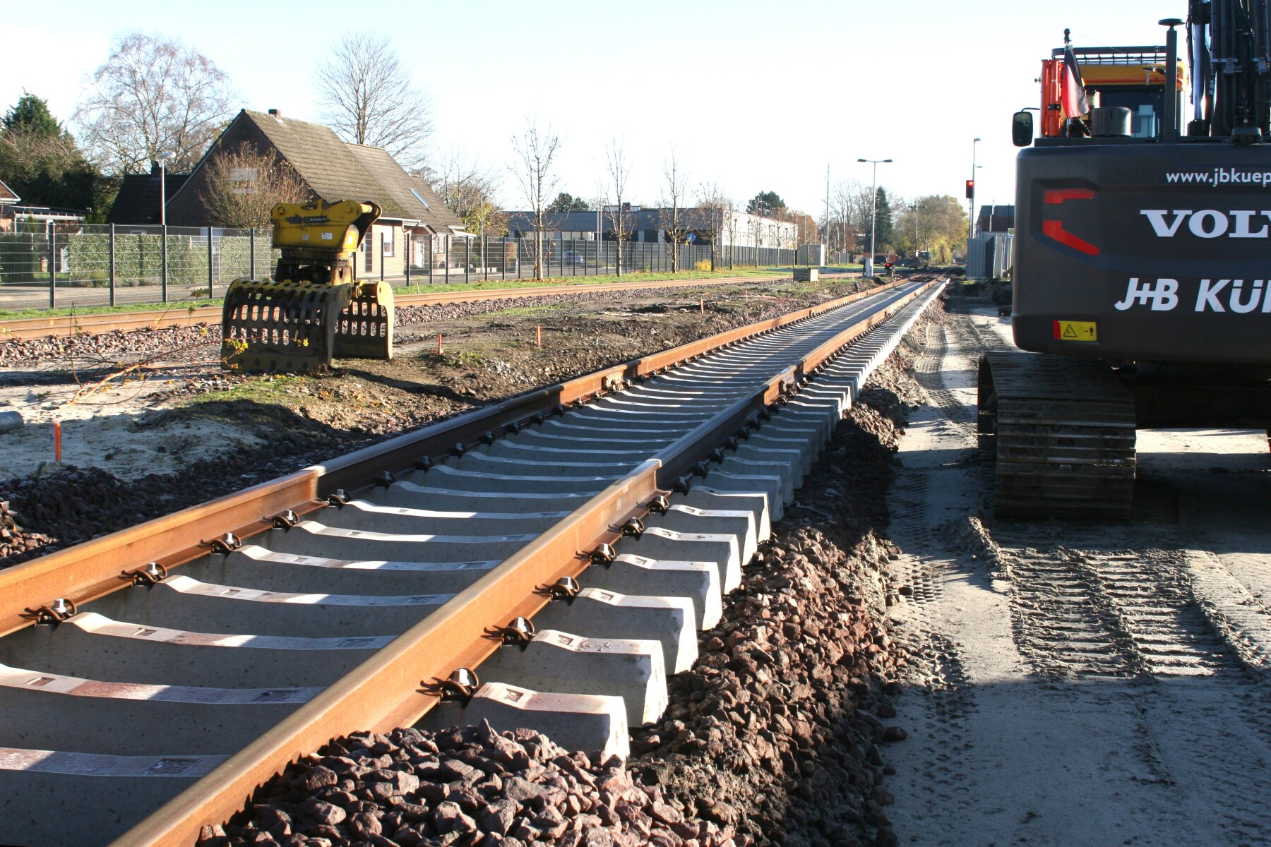 Zoals ik in bericht 3031 al aangaf ligt zo te zien het werk helemaal stil. De stremming van de lijn is vanaf de 14e van deze maand opgeheven tot 1 februari 2026. In mijn korte afwezigheid heeft er een blauw/witte personentrein, die gecharterd was door de rode SPD, zeg maar de Duitse Pv/dA, gereden van Bad Bentheim/Nordhorn tot aan Laarwald en terug. (ik kan de beelden helaas niet terug vinden op het smoelenboek).