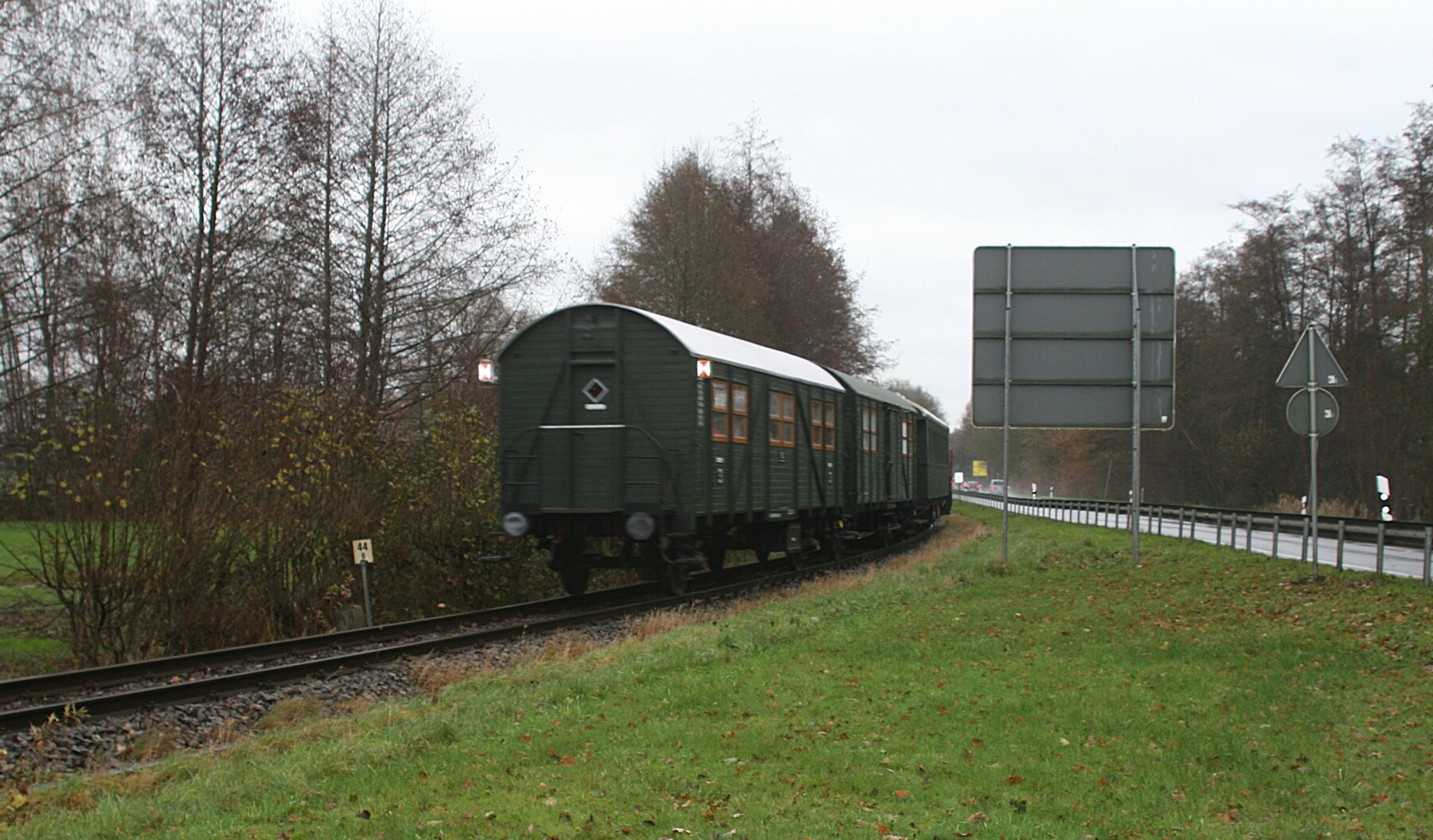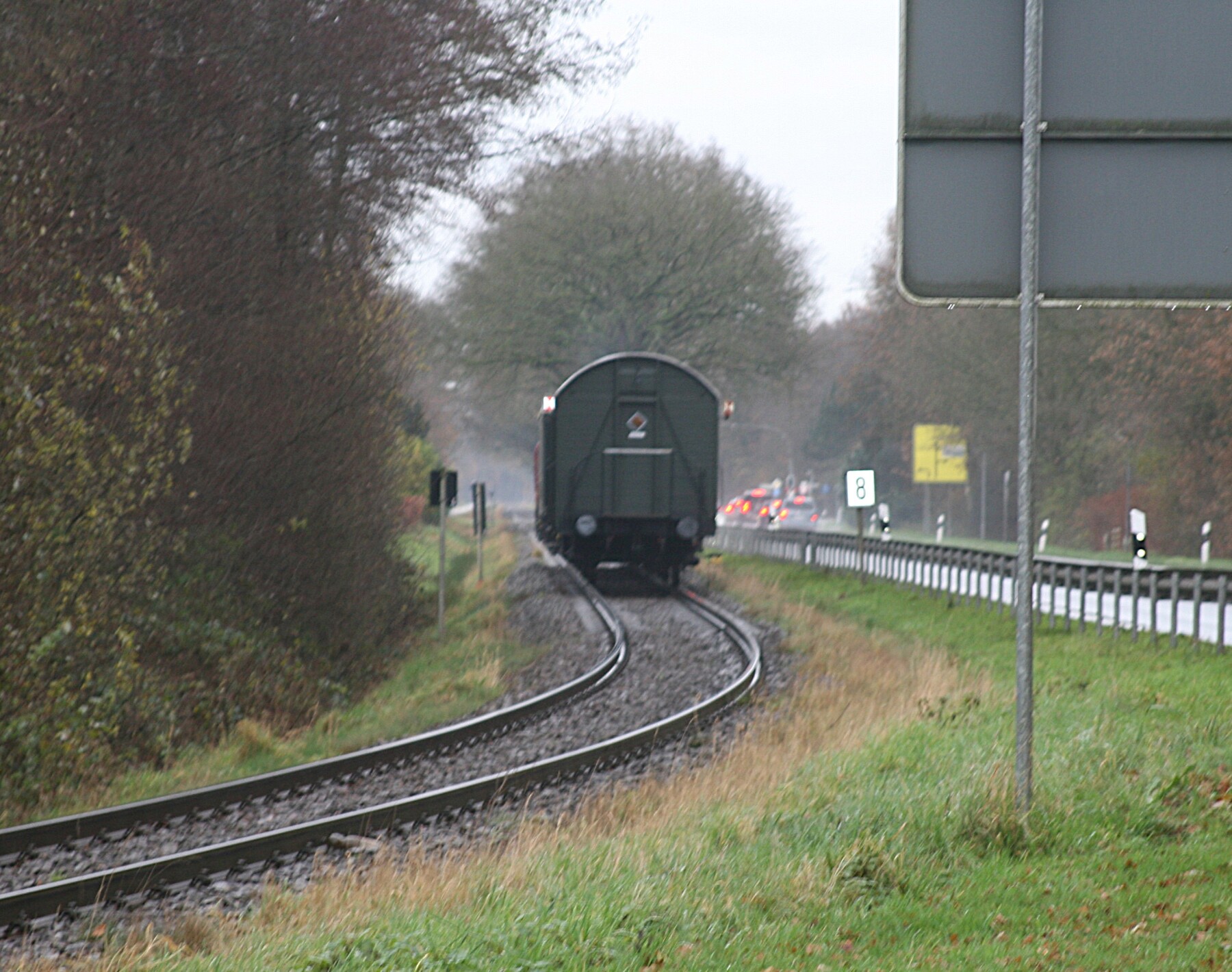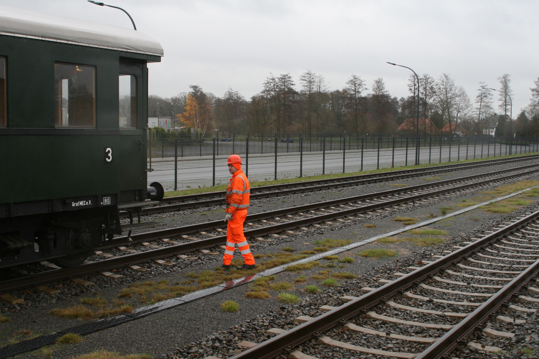 Vandaag was het weer eens zo’n echte ouderwetse herfstdag, niet al te koud, wazig zicht met een vervelende alles doornat makende regen. Dit weer hield mij er niet van om de Dacia te nemen en richting Neuenhaus te gaan Volgens wel ingelichte bronnen zou forumlid Bertholdowitsch daar met vrouw en kinders op de Santa Claus express stappen. Inderdaad heb ik hem heel even de hand kunnen schudden.