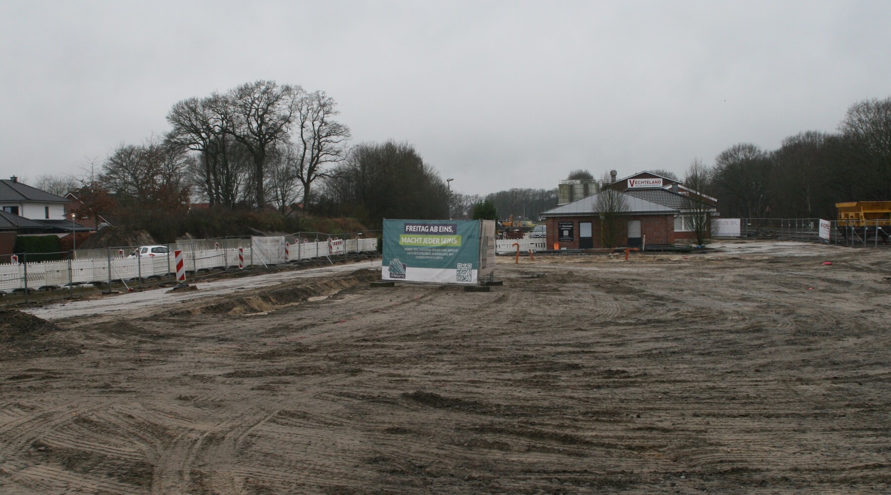 Hier sta ik op de Fohlenstrasse en kijk met het (nog) ontbrekende stuk van de verlenging in de richting van Veldhausen