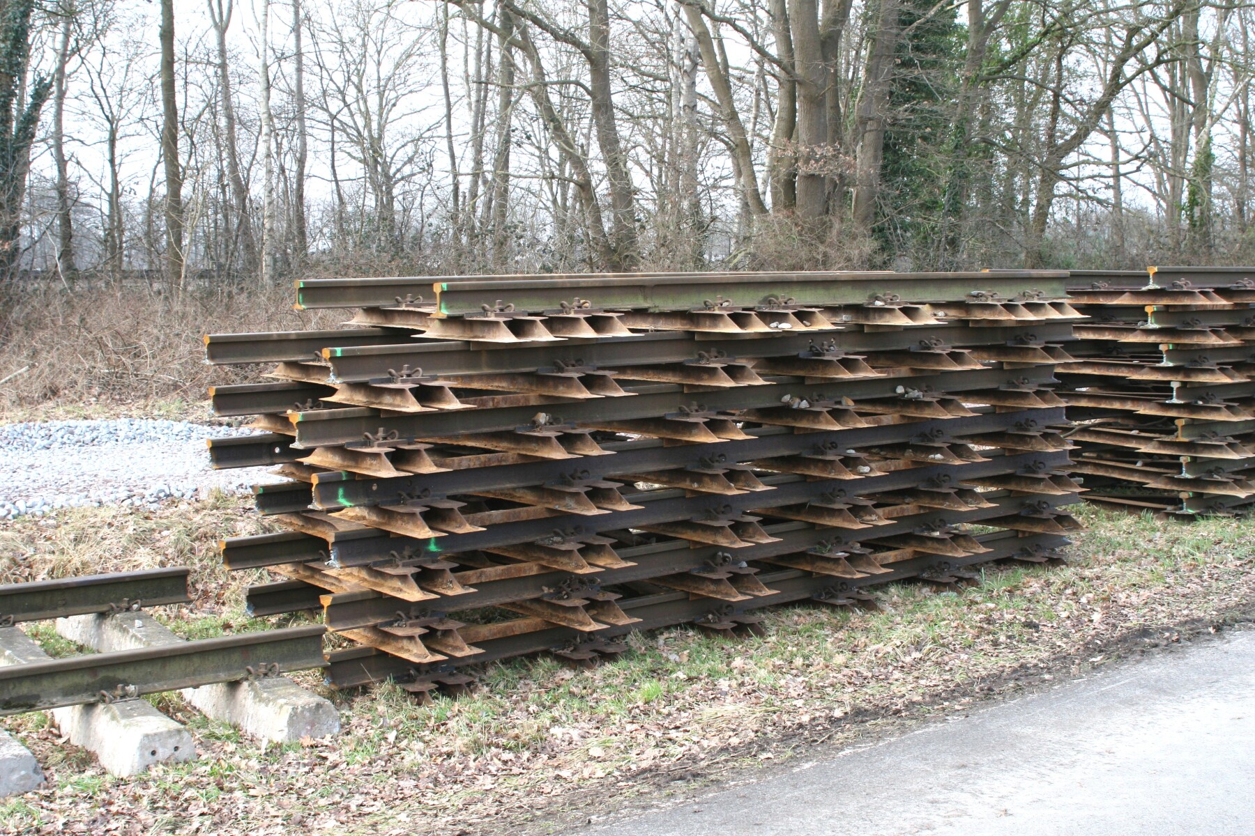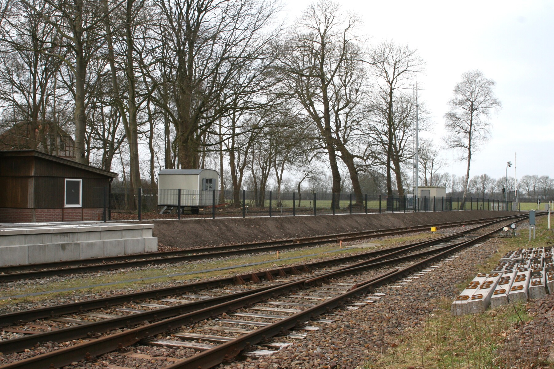 4124-2344 Op Laarwald was niet veel veranderd dan dat er een berg betonnen wissel bielsen zijn neer gelegd. Waarschijnlijk bedoeld voor de wissels 65W12 en 13 in Coevorden Vorbf