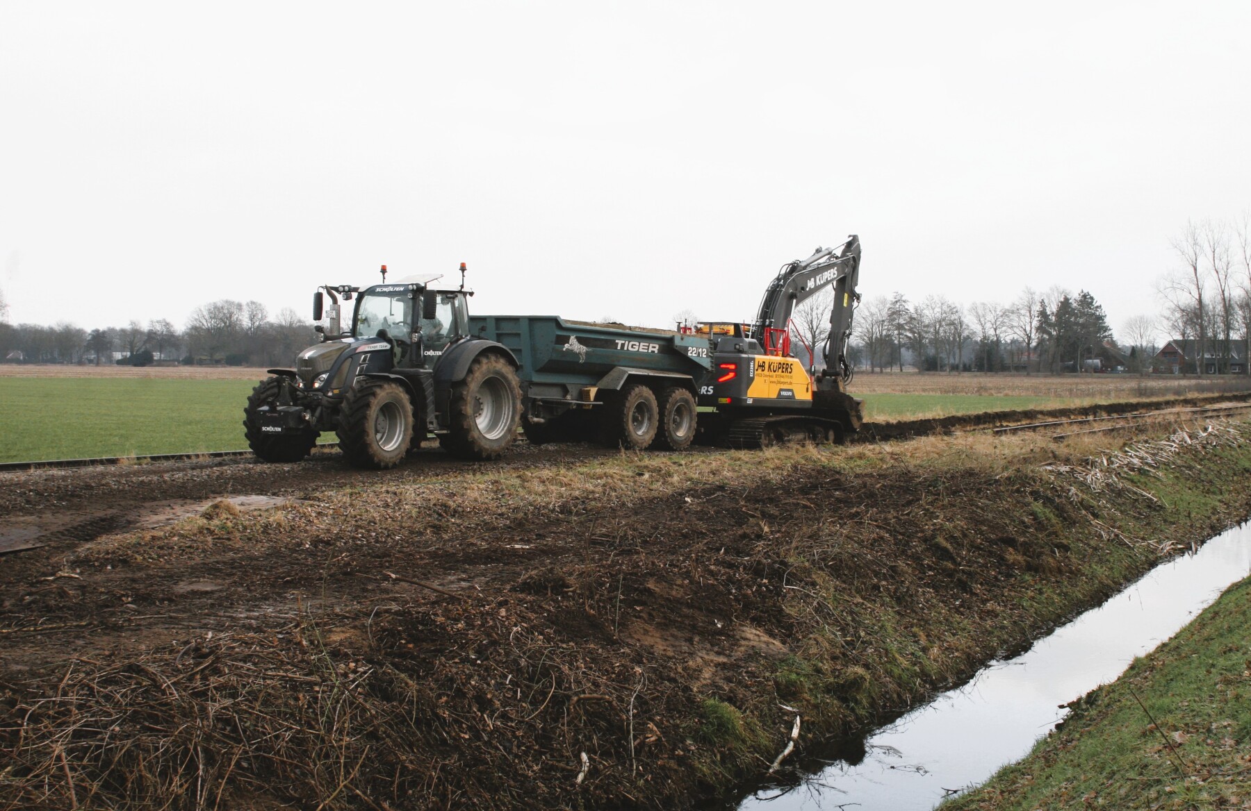 4131-2352 Een bagger haalt het hele baanlichaam, wat hoofdzakelijk uit zwarte turf bestaat leeg