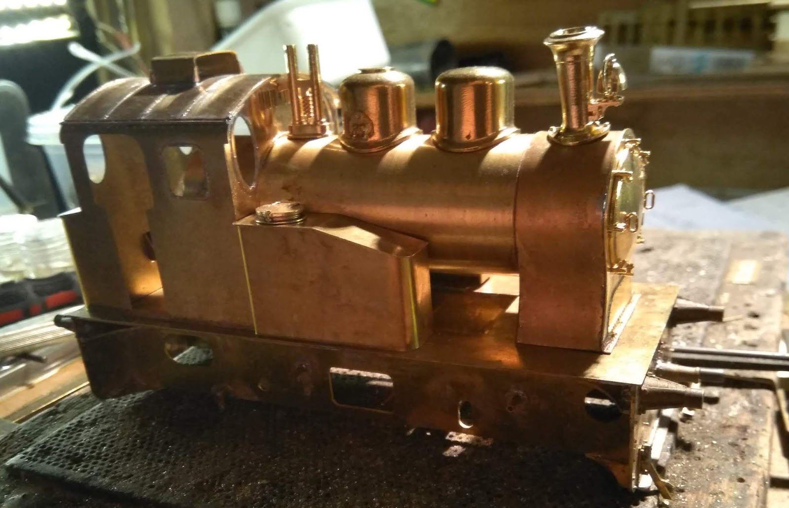 Vanmorgen begonnen met het toch weer anders te doen dan het 1e model van Vs-2. Niet eerst de rookkastbeplating vastzetten aan de ketel en dan de achterwand, maar andersom.