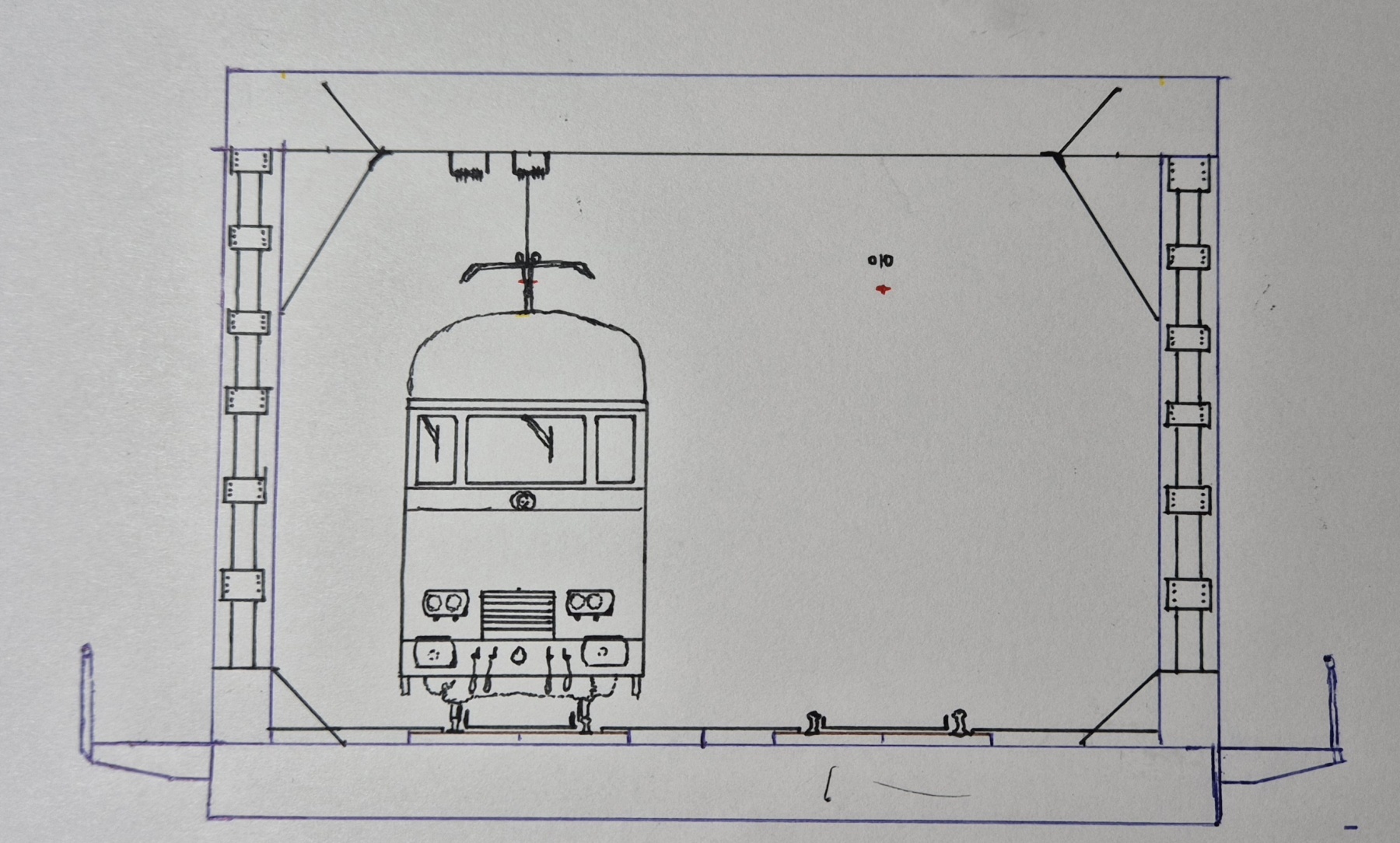 Hoogte van de rijdraad opgezocht in de encyclopedie. Dat is ook een handig aanknopingspunt om hoogte in te schatten.