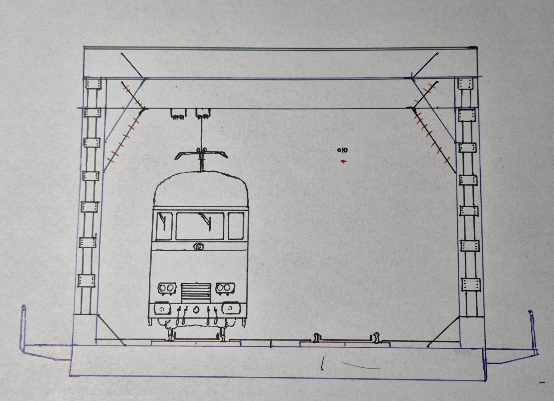 Ik heb aan de hand van foto's met een DDM op de spoorbrug al geprobeerd even een schets te maken van de brug in 1:87