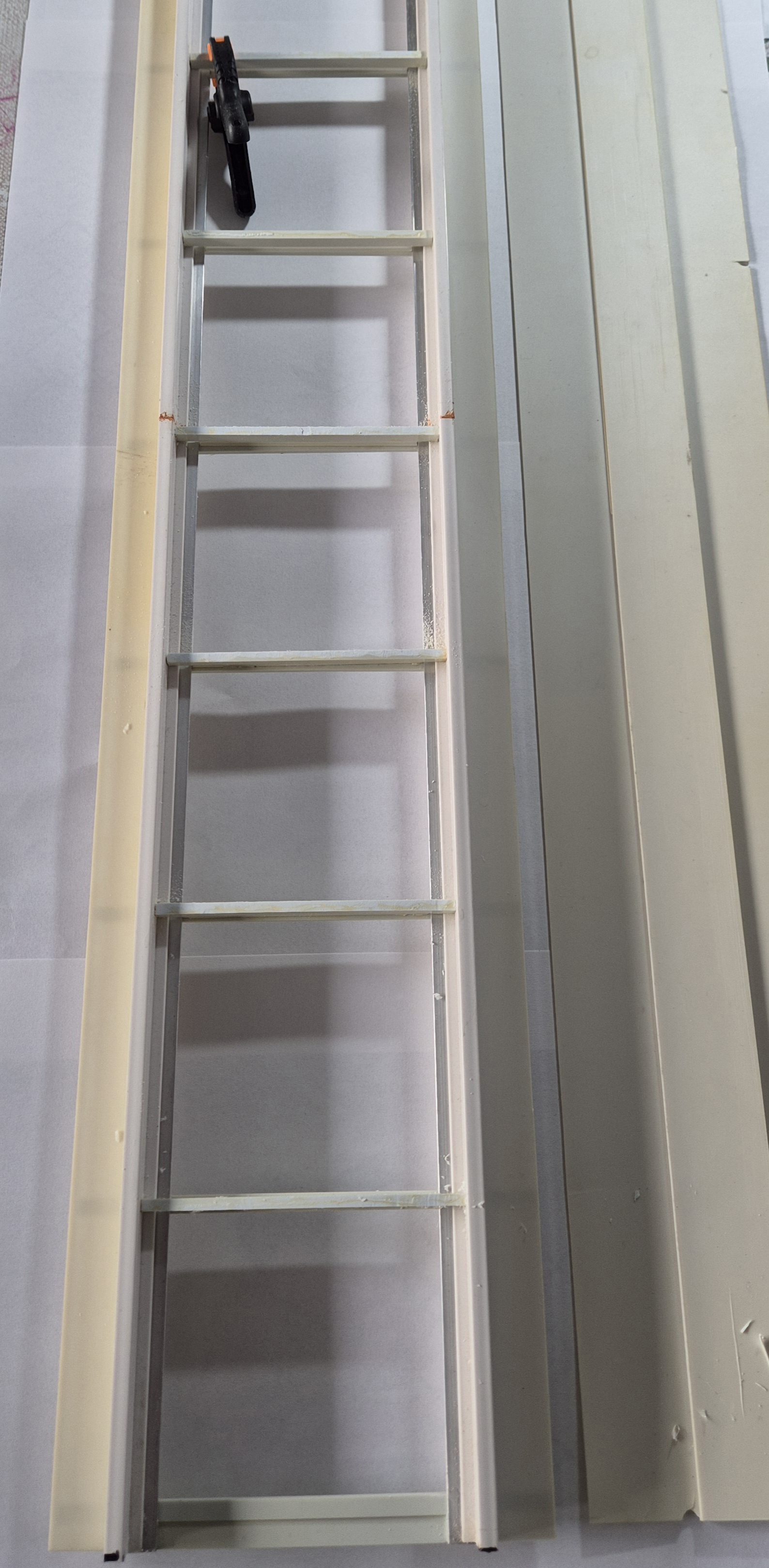 Het lijkt een eenvoudige brug, maar zonder bouwtekening uitrekenen valt echt niet mee. Dus nu eerst maar even een nieuw brugdek monteren. Dan kan de lijm ondertussen drogen.