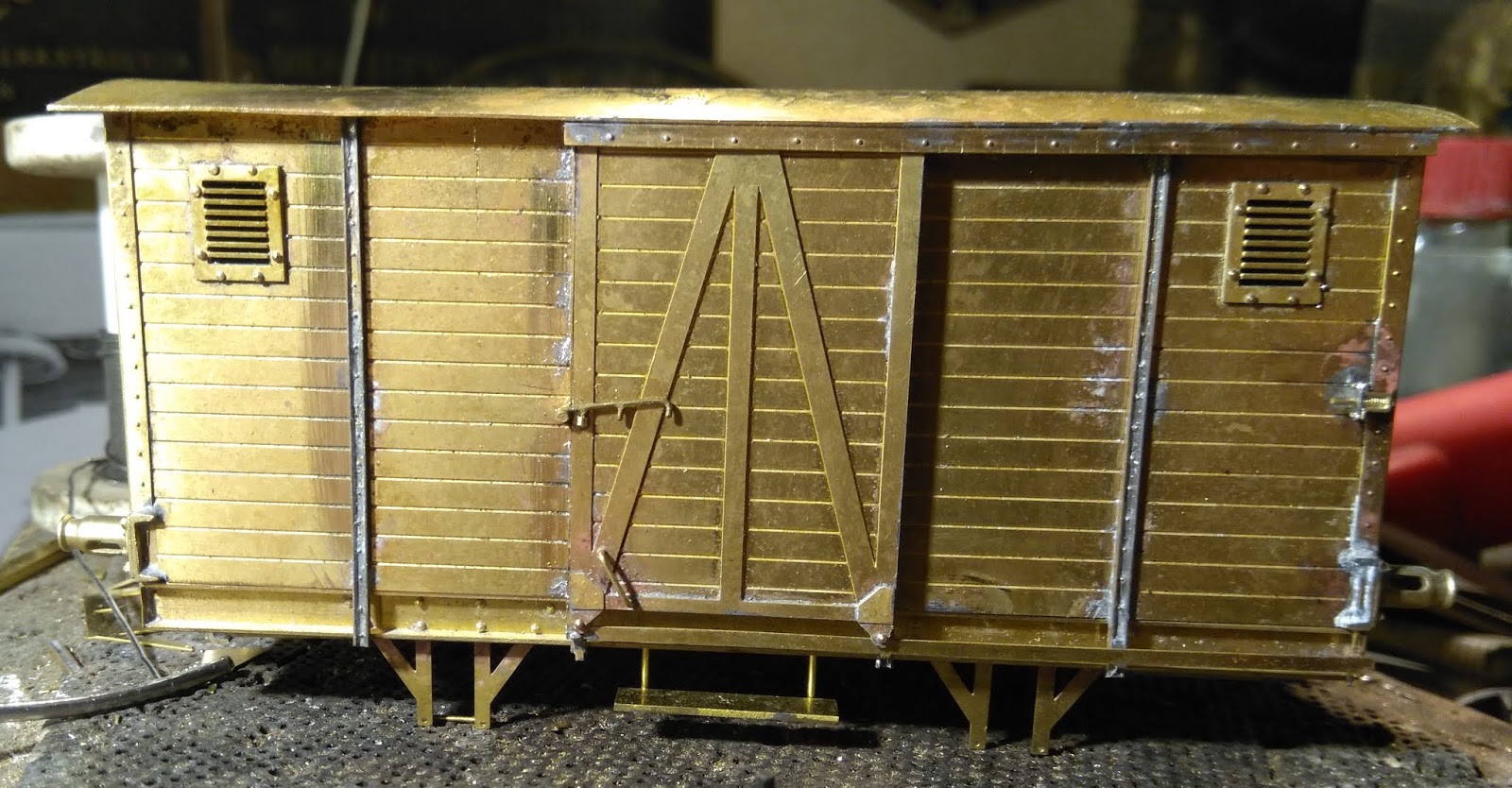 Klinknagels in de U-profielen maak ik , i.t.t. de goederenwagen, van de strips uit de etsplaat.