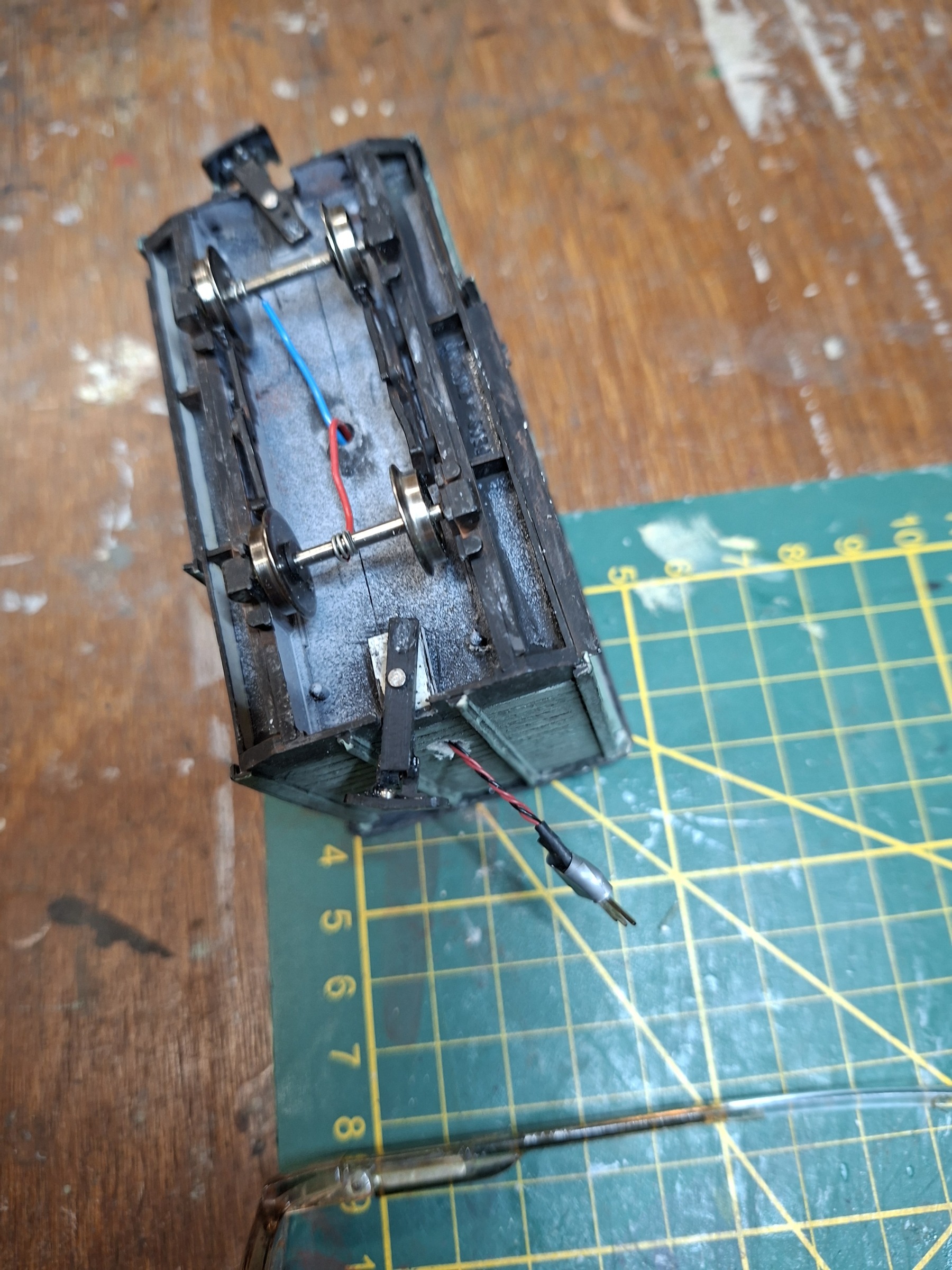 2020. Tijd vliegt. Het baantje wordt nog regelmatig gebruikt. Maar de oude Fleischmann wissels blijven een probleem voor 2 assers. Je zou er nieuwe rails en wissels met metalen puntstuk op kunnen leggen. Veel werk en of het er mooier van wordt? Maar dat stoppen op die wissels is toch wel irritant en ook op andere plekken staat het brommertje nog wel eens stil. Dus het locje heeft een grote beurt gehad en een van de wagens kreeg metalen wielen met stroomafname. Nu hobbelt het lekker over een stukje stroomloos.