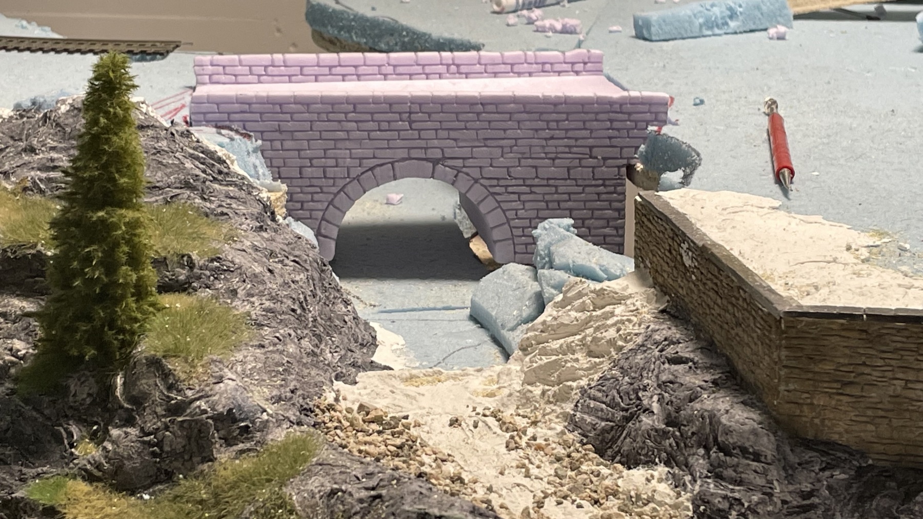 Moet alleen eerst nog even een brug fröbelen want het spoor naar het station moet wel over deze beek.