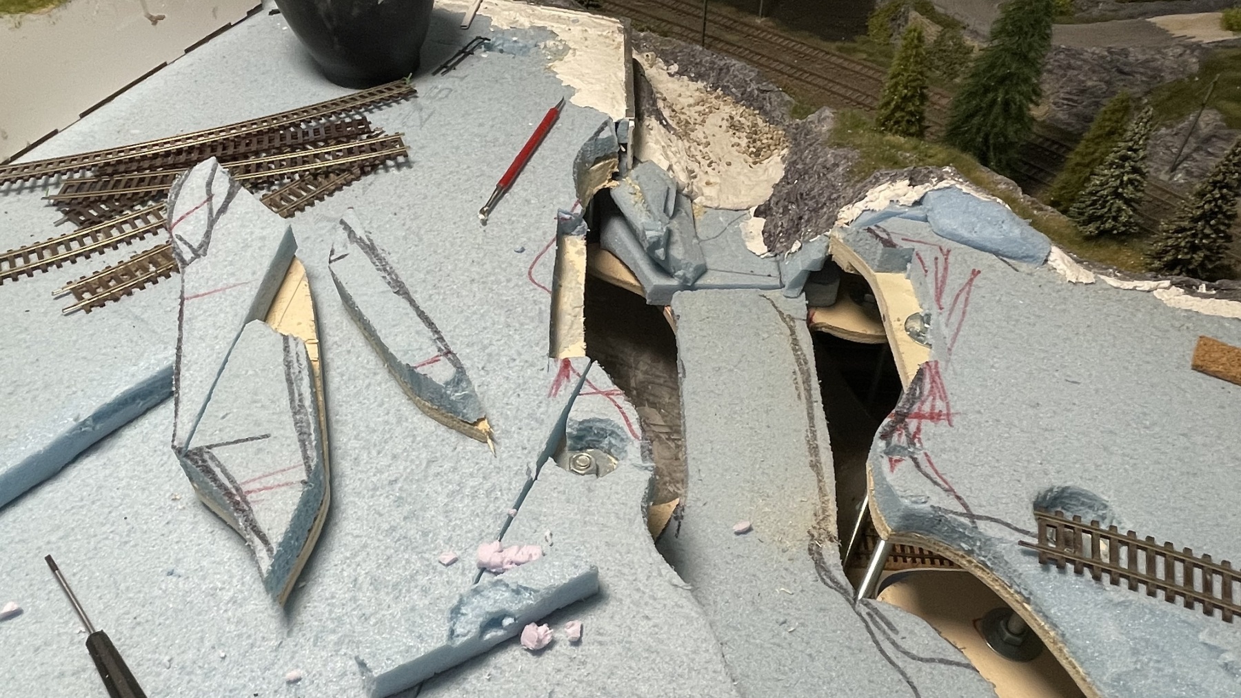 De zaag moet zo even in de baan om de brug op juiste plaats te krijgen. Dus zo eerst allen treinen uit het schaduwstation halen wat hier recht onder zit.