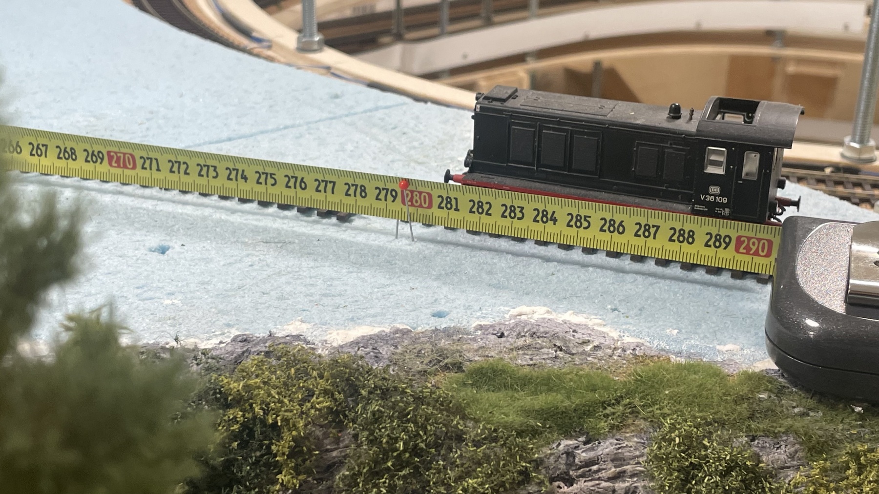 Op de plaatsen waar de locs staan moet ongeveer de 1 wissel van het emplacement komen. Ik heb hier tussen dus ongeveer 2,8 meter voor wisselstaten en sporen.