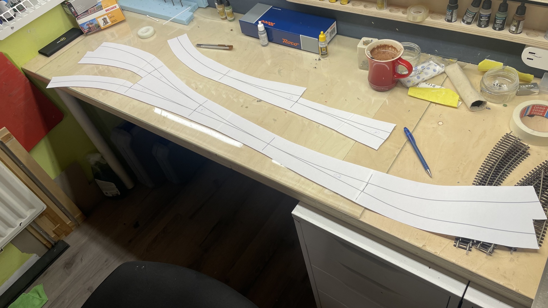 Volgende stap is om de gebogen stationssporen te gaan uitzetten om te kijken of die ook naar mijn zin worden.