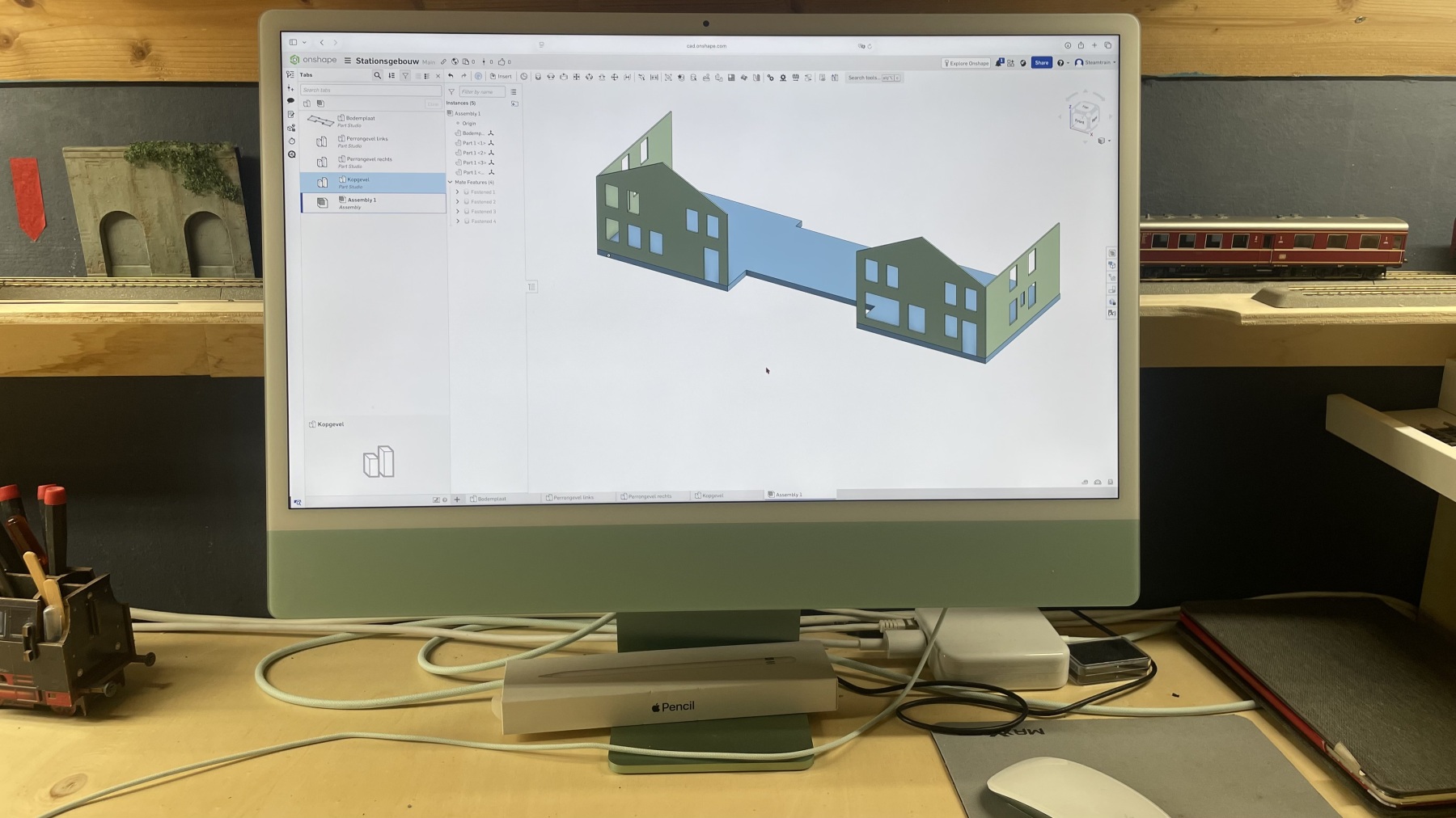 Eens kijken of ik zelf een stationsgebouw kan maken. Eerst de basis maar maken in Onshape. Resultaat van uurtje tekenen: