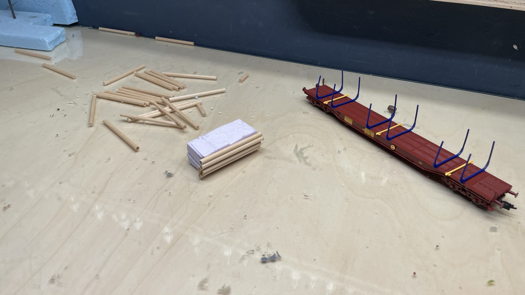 Intussen krijg je weer allerhande ideeën wat je dan kan maken. Was al begonnen om hout 🪵 lading voor de Zweedse houtwagons te maken. Op zich werkt dit maar gaat wel veel tijd in zitten omdat ik minimaal 9 van die houtstapels moet hebben.
