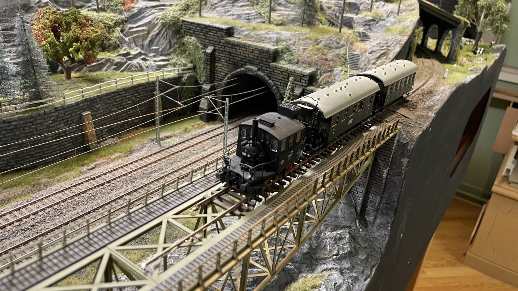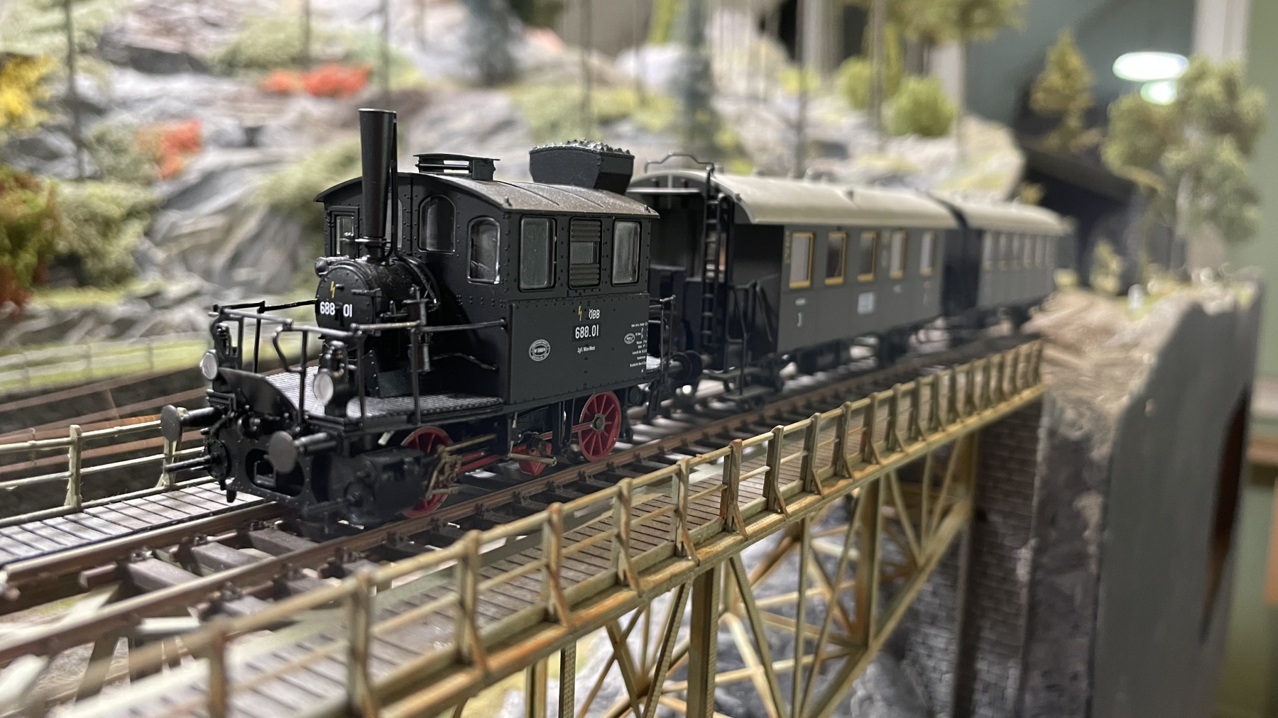 Sound en lichtfuncties laat ik (door iTrain) ook pas aanzetten als een trein het zichbare deel van de baan nadert en gaat weer uit als ze dit deel verlaten (niet alle rijtuigen hebben een functiedecoder dus die blijven wel branden).