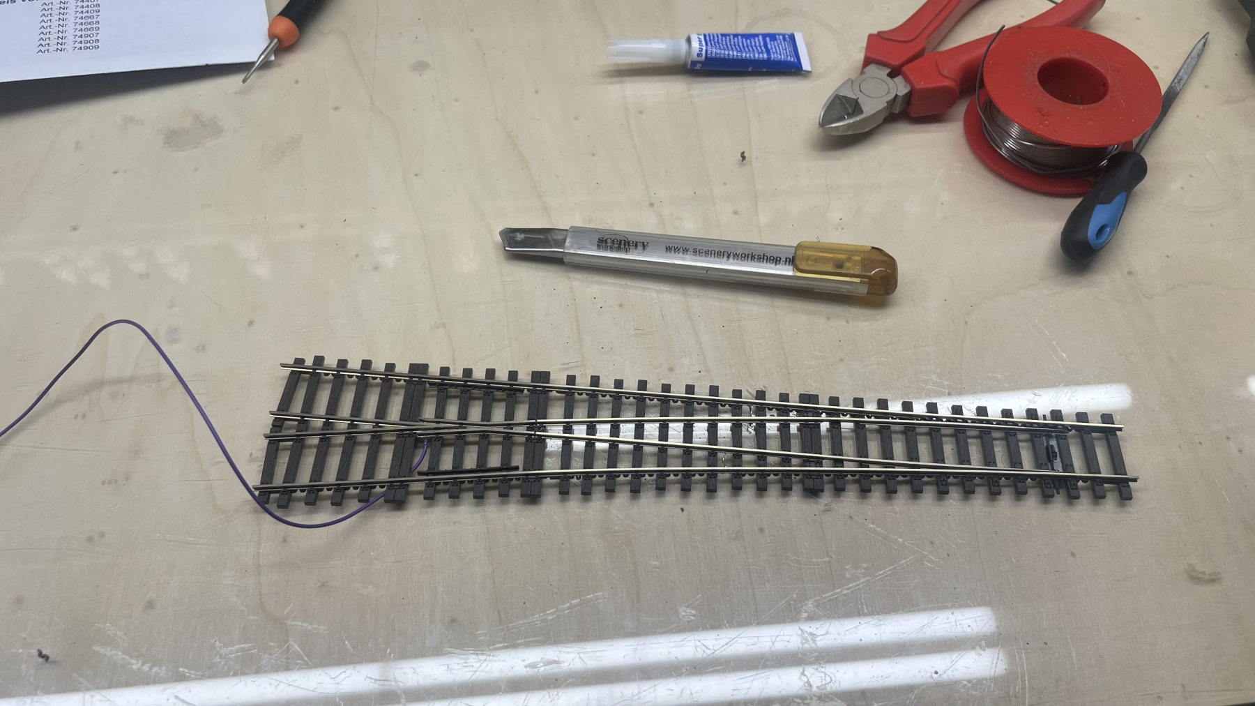Dacht dat eerste wissel een y-wissel was maar blijkt een linker te zijn. Dus andere uit de voorraad in elkaar gezet.