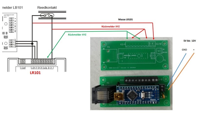 De module en aansluiting van de S88 melders, voor de omzetting naar de Lenz RS bus.