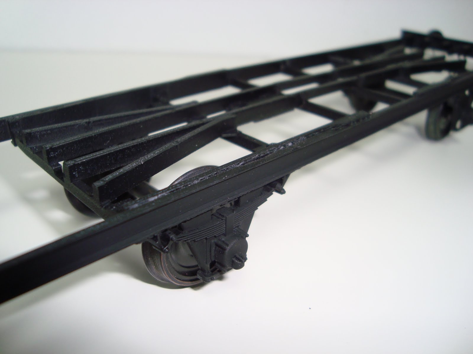 Ik ben ook razend benieuwd naar de Brawa's, maar ik durf daar vast niet gelijk de zaag in te zetten. Met die oude wagens heb ik geen scrupules. Ik probeer het wel allemaal een beetje netjes af te werken zodat een Brawa en dit vehikel elkaar tenminste optisch verdragen wanneer ze in elkaar's buurt zijn.