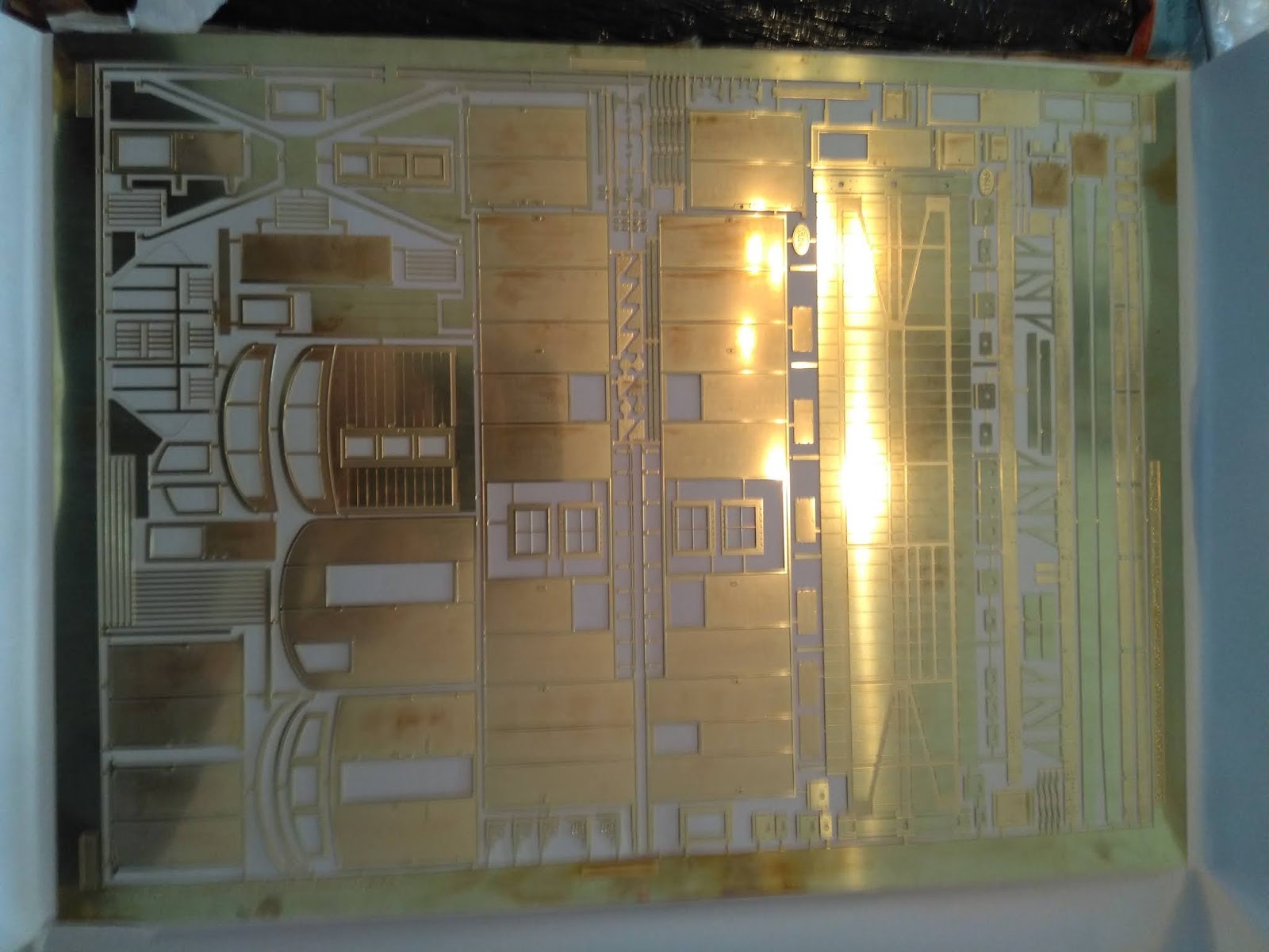Ik begin met de D. Bodem onderdelen uit de ets knippen. (eigenlijk alles losknippen) Bufferbakl was bedacht om om te vouwen, maar dan blijf je met een lelijke sleuf zitten. Ik ga daar een plaatje overheen zetten. Ook zou je een U profiel kunnen gebruiken, met de etsdelen die je eraf haalf voor de maten en gaten als mal.