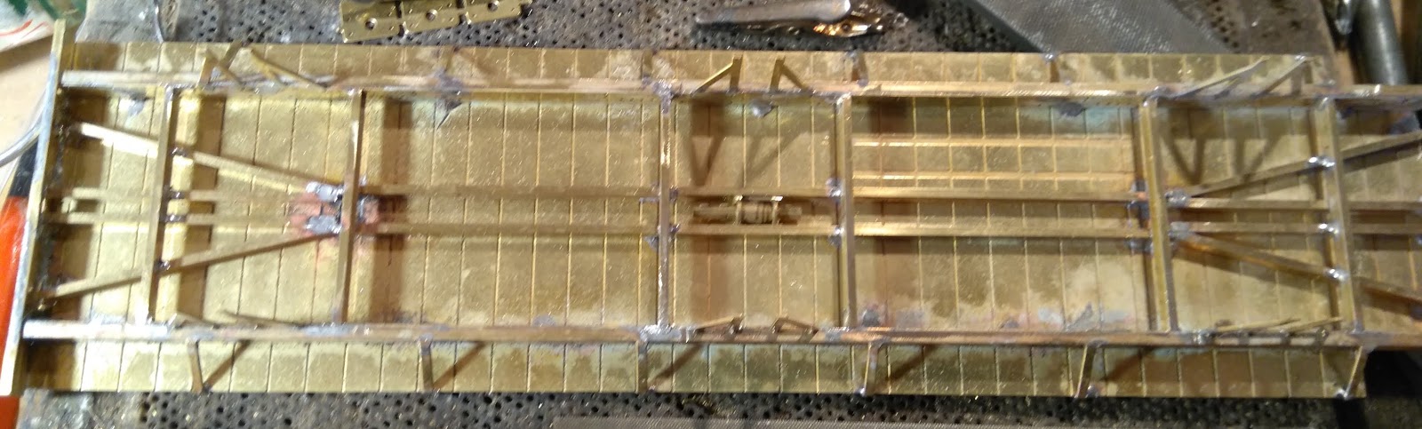 In de hoeken L-profiel 3x3 en de wanden komen eigenlijk probleemloos aan elkaar. Stevige verbinding met vloeiend soldeer. Dit zijn die momenten waar je als modelbouwer van zegt..past mooi, weegt wat en daarbij dus goed gevoel voor de rest van het afbouwen van het model.