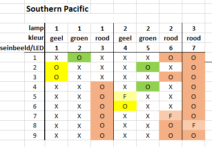 In totaal dus 9 leds en 9 seinbeelden, maar in lamp 3 worden geel en groen niet gebruikt.