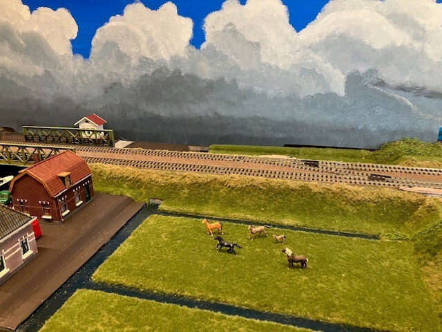 De bouw van een modulebaan met Nederlands landschap.
