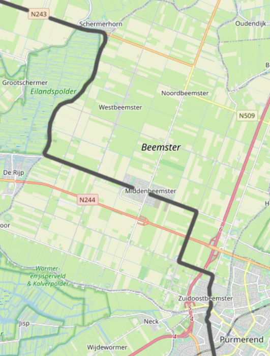 Geen spoorlijn, die blijft bij Oosthuizen net buiten de Beemster inderdaad.