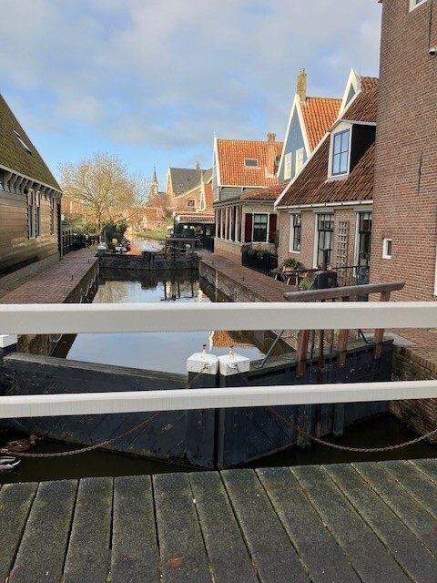 Wat ook mooi is de sluis midden in het dorp. In het museum wist men niet waarom daar een sluis is met een groot verschil in waterpeilen.