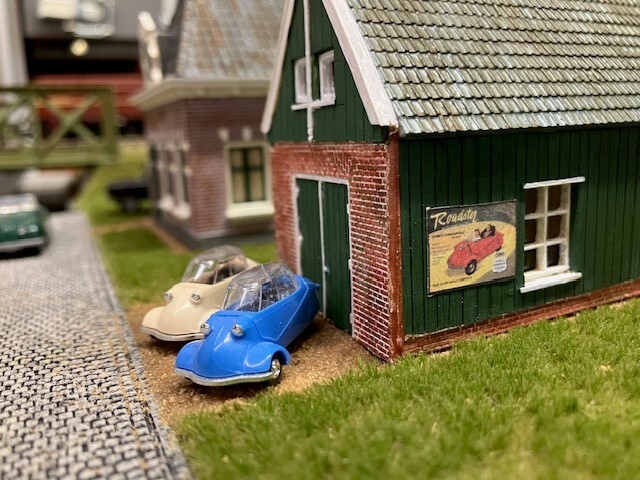 Klopt Eric, die garage was nogal groot voor deze plek. De twee Messerschmittjes die ik heb passen net op het terreintje voor het schuurtje. Nu nog het logo van Messerschmitt op de gevel plaatsen en dan is het een bedrijfje dat in dwergauto's handelt. Wel zo netjes  ;D.