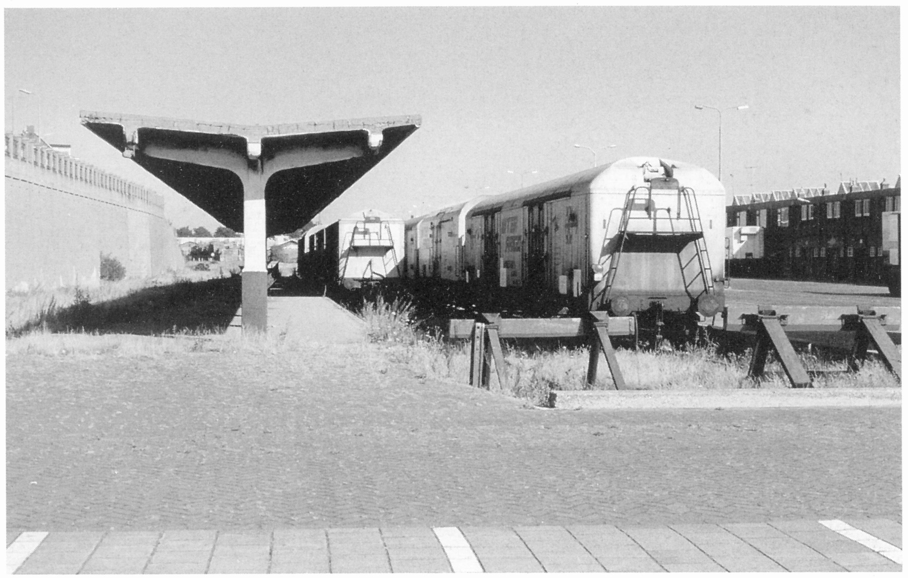 De afbraak van het Visstation te IJmuiden, juni 1971. De fotograaf staat op het laatst overgebleven overdekte laadperron, dit zou tot halverwege de jaren 90 blijven bestaan. Links is te zien dat het andere laadperron wel net gesneuveld was. Het gebouw links is het oude Havenkantoor, dat het nog tot de zomer van 2024 zou uithouden. Fotograaf onbekend