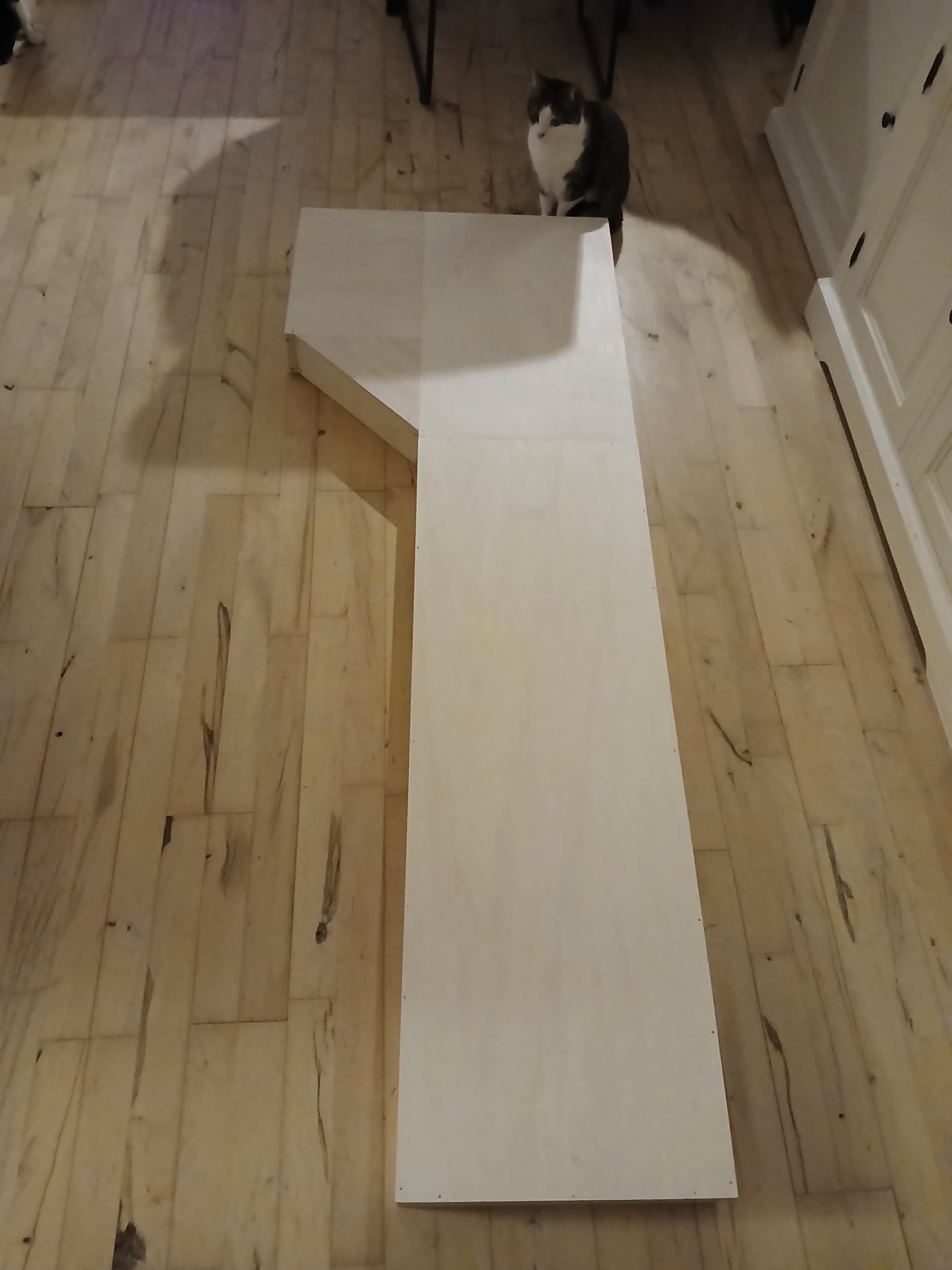 Hieronder een tussentijdse bouwinspectie van een rechte- en hoekmodule door opzichter Gijsje, deze modules komen op de tekening links bovenin