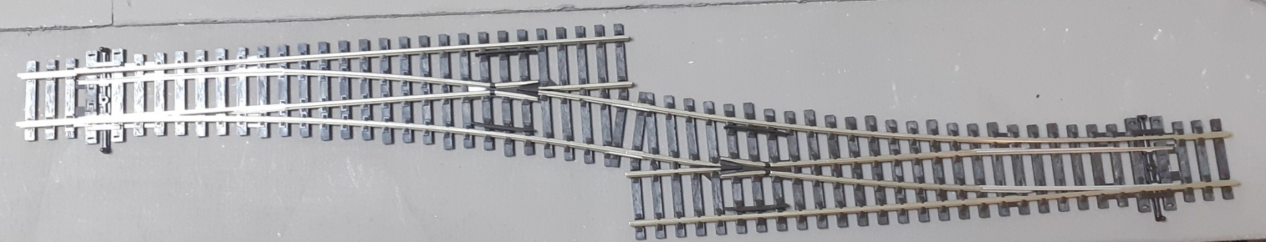 Vorige week al binnengekomen twee SL95 wissels van Peco. Ze gaan aangestuurd worden met de MTB MP1 wisselmotor. Die gebruik ik ook bij de Peco meegebogen wissel in het schaduwstation. Dan kan ik ook polarisatie gaan gebruiken, zodat de sleeper ook stroom krijgt bij het overgaan van de rail. In ieder geval zal ik aan de onderkant twee draadjes moeten doorknippen, anders heb ik kortsluiting