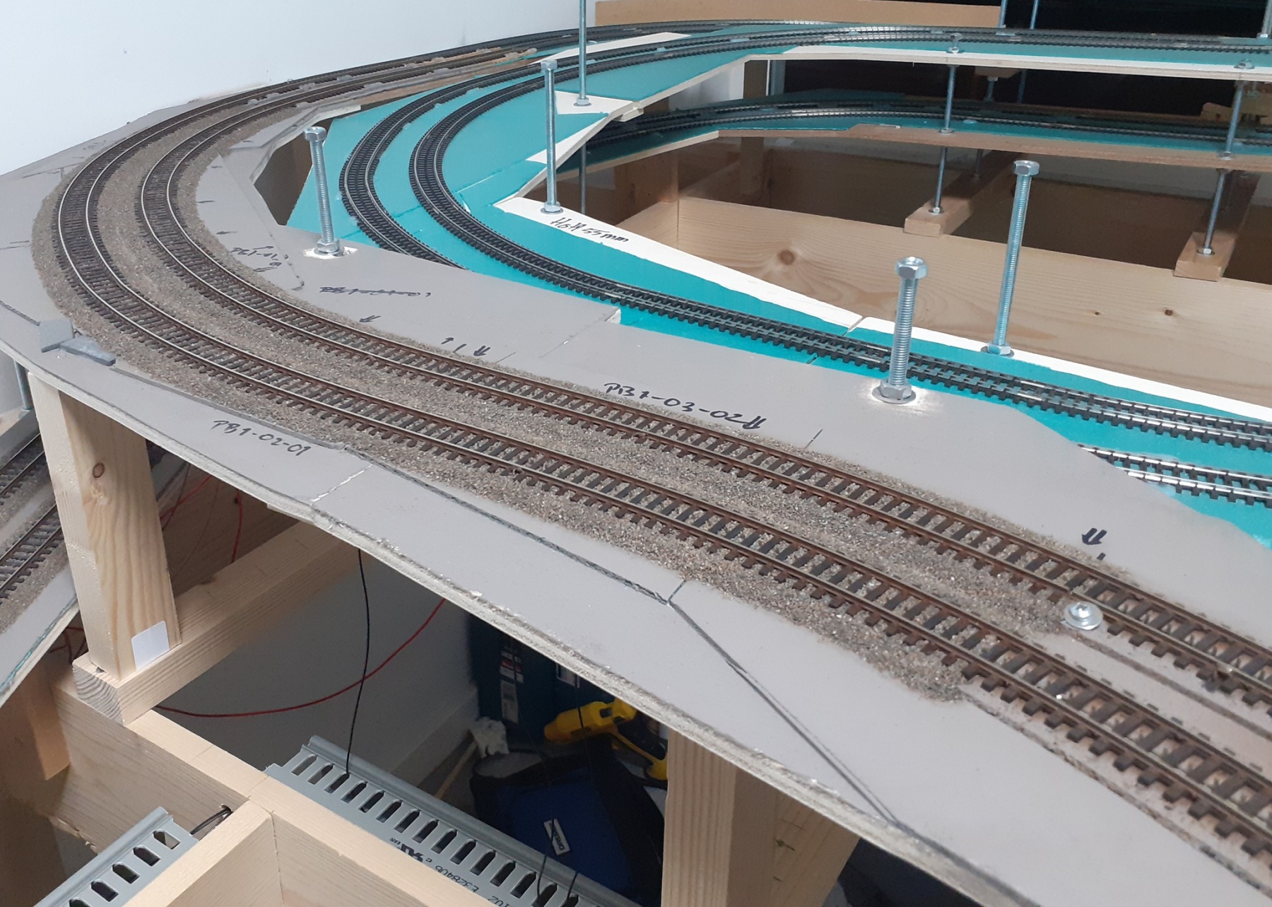 Er zijn ook nog voorderingen aan de baan zelf. Afgelopen week het tweede spoor van het bovenste paradespoor in de ballast gezet.