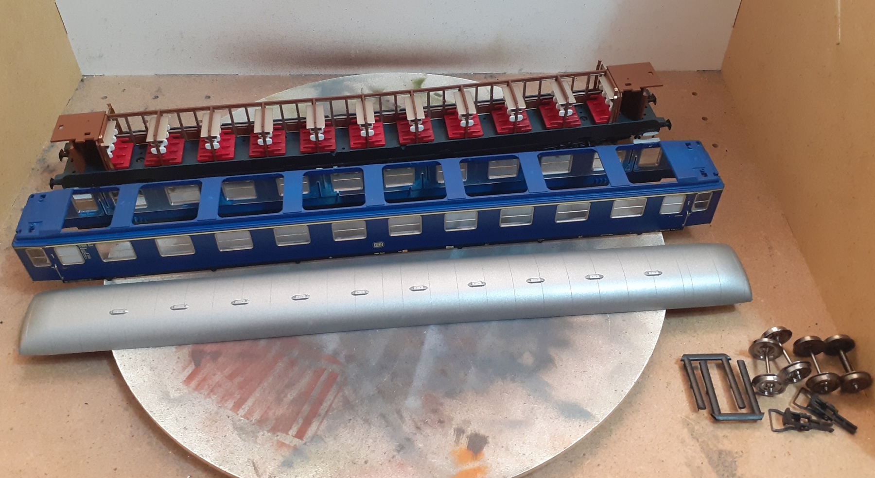 Na dit uitzoekwerk kreeg ik weer zin om een rijtuig aan te pakken. Ik heb voor de A4ümg-54 van Brawa gekozen. Ik wilde eigenlijk alleen het dak doen. Maar dan ben je het rijtuig aan het demonteren, kun je net zo goed de rest ook doen :)