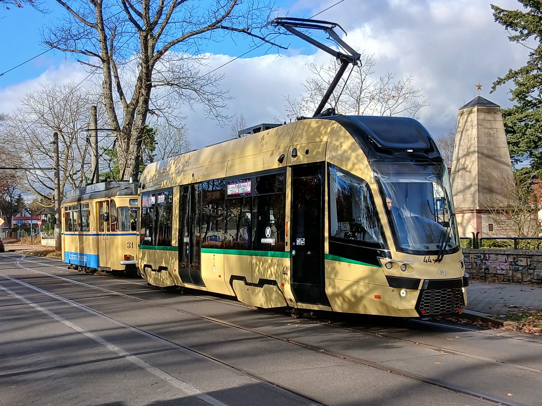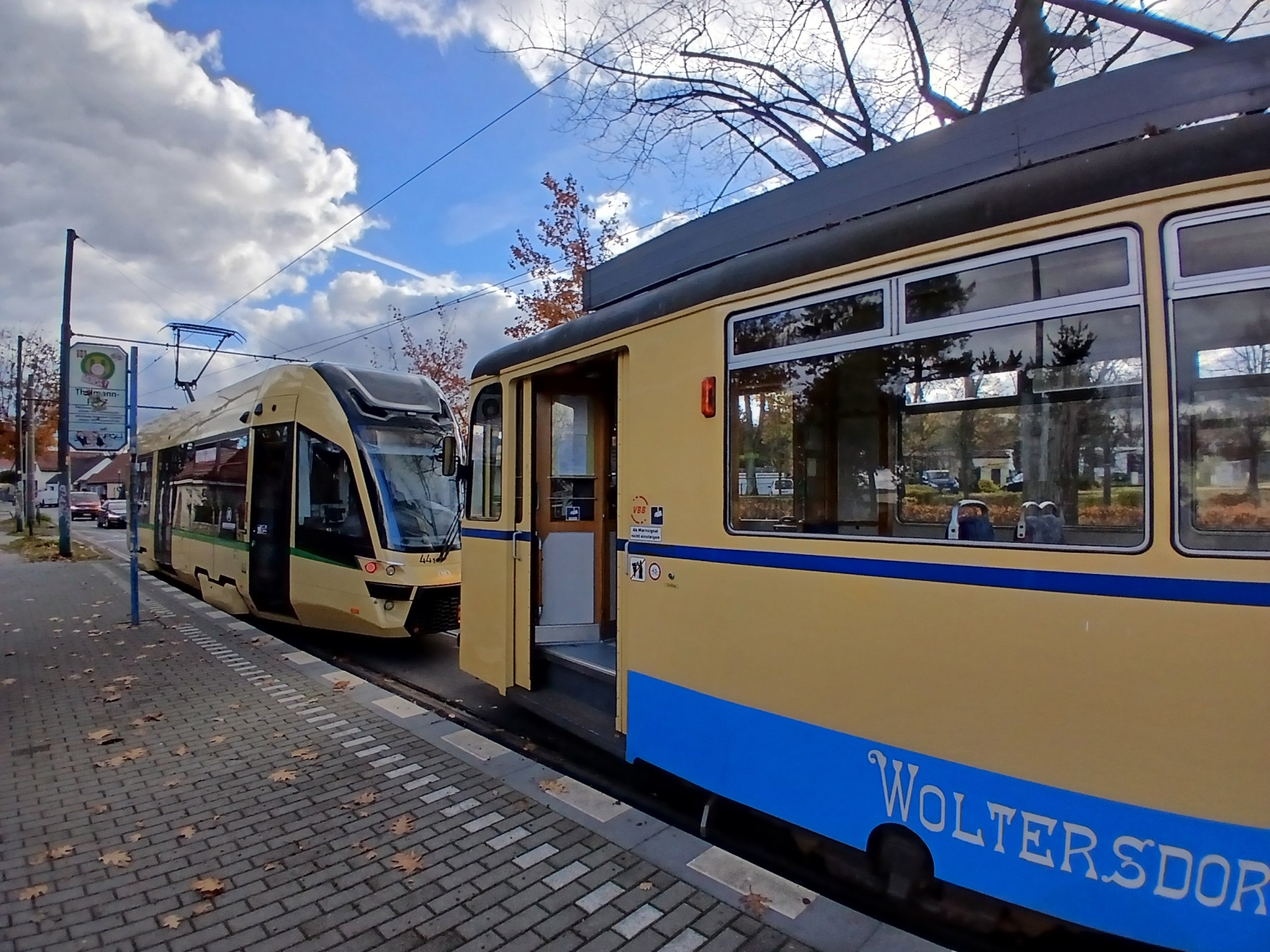vorige week maandag: in Potsdam nog steeds onmisbaar; en van de nieuwste trams geen spoor.