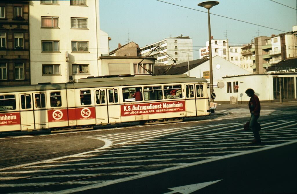 Maar ik heb wel twee plaatjes van trams in Mannheim ergens begin jaren 80 gevonden.