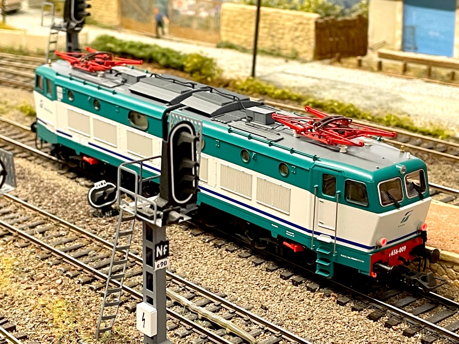 Wat ik nog niet eerder heb verteld is dat Bougainville (besloten dat dat de naam van het stadje wordt) niet heel ver van de Italiaanse grens ligt en er dus nogal eens wat grensoverschrijdend verkeer komt. Ik moet natuurlijk wel iets verzinnen want stiekem vind ik sommige Italiaanse locs ook erg mooi, en deze met sound kon ik echt niet laten liggen.....
