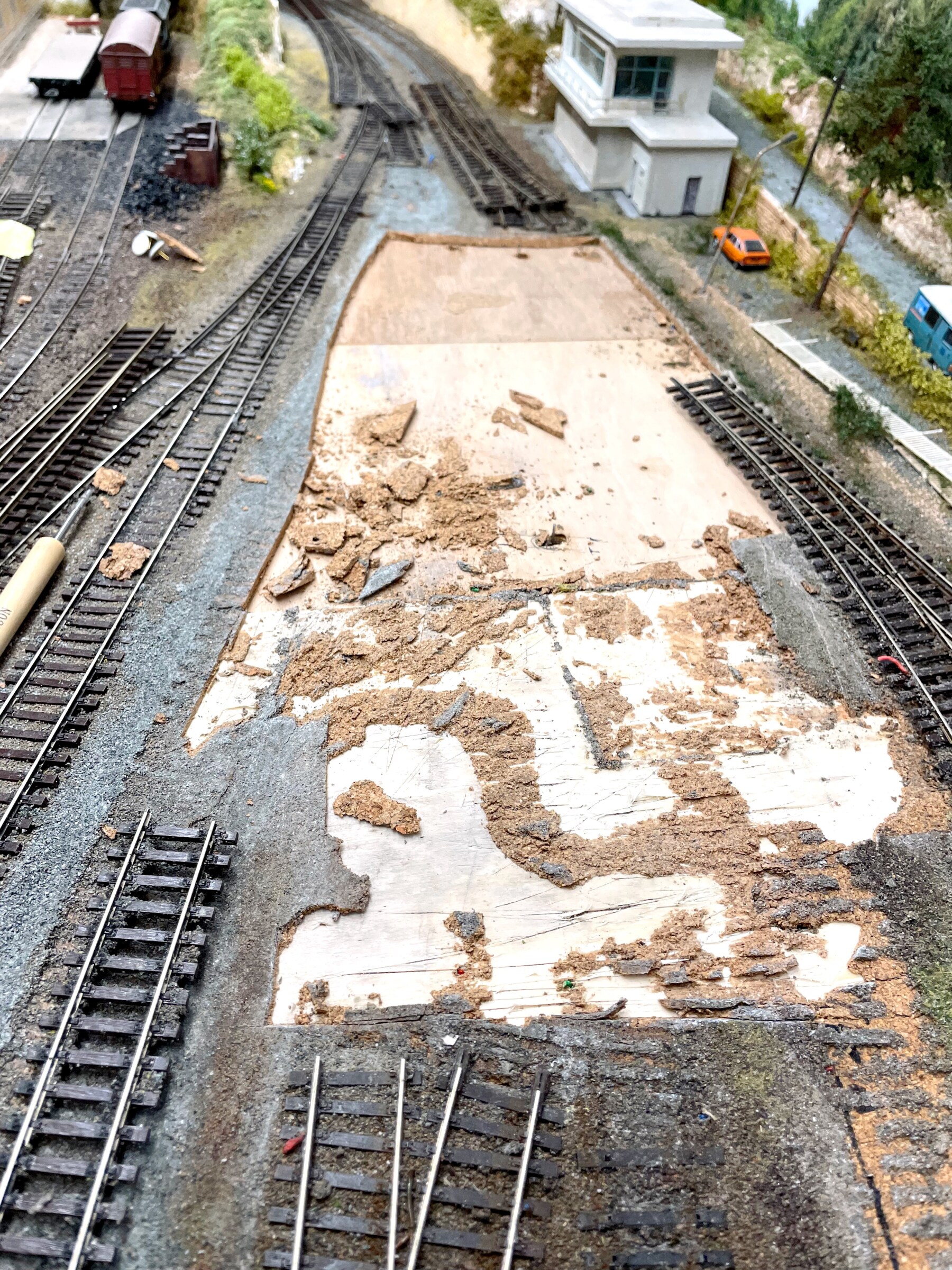 Wel zo handig om dat even aan te passen, omdat ze elke keer kortsluiting veroorzaken als ze ontsporen. Ik ben deze nu aan het vervangen en verbeteren, het spoor links ziet er nu weer vloeiend uit, en rechts ligt een nieuwe wissel, meteen maar even een langer model aangeschaft, het blijft prachtig spul, dat Tillig Elite.