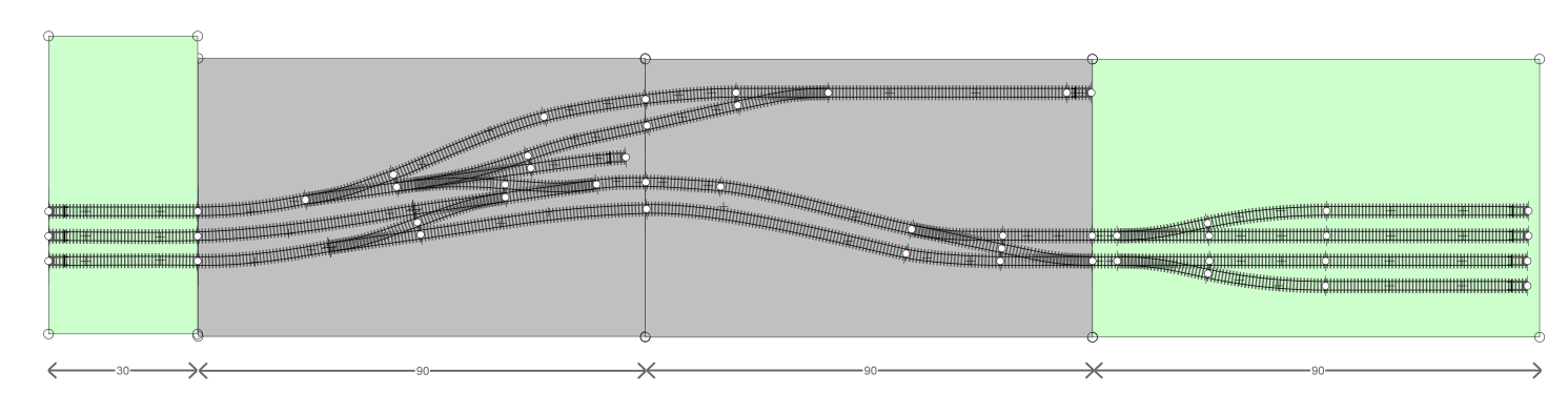 Op deze manier ontstaat er voldoende rangeermogelijkheid. Zowel aan de linker, als aan de rechterzijde kunnen korte treinen of losse locs een plekje krijgen.