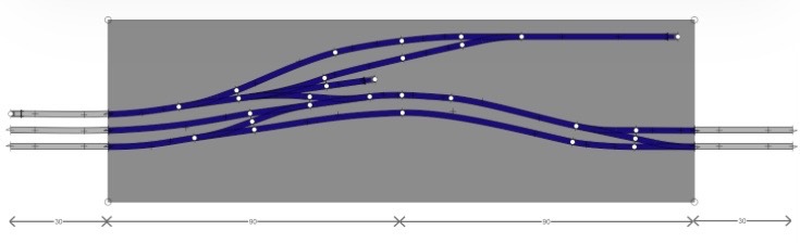 Als je hier bijvoorbeeld die dure wisselmotoren zou toepassen met geintegreerde DCC decoder en geintegreerde punstuk polarisiatie, zouden er maar 2 draden gaan naar elke wissel toe. Alleen je hele bak zou dus 5x duurder zijn.
