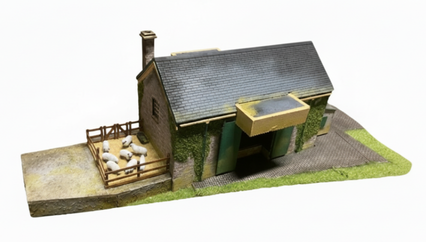 Het volgende diorama is gereed. Hier zie je het monumentale stationsgebouw van Corfe Castle.