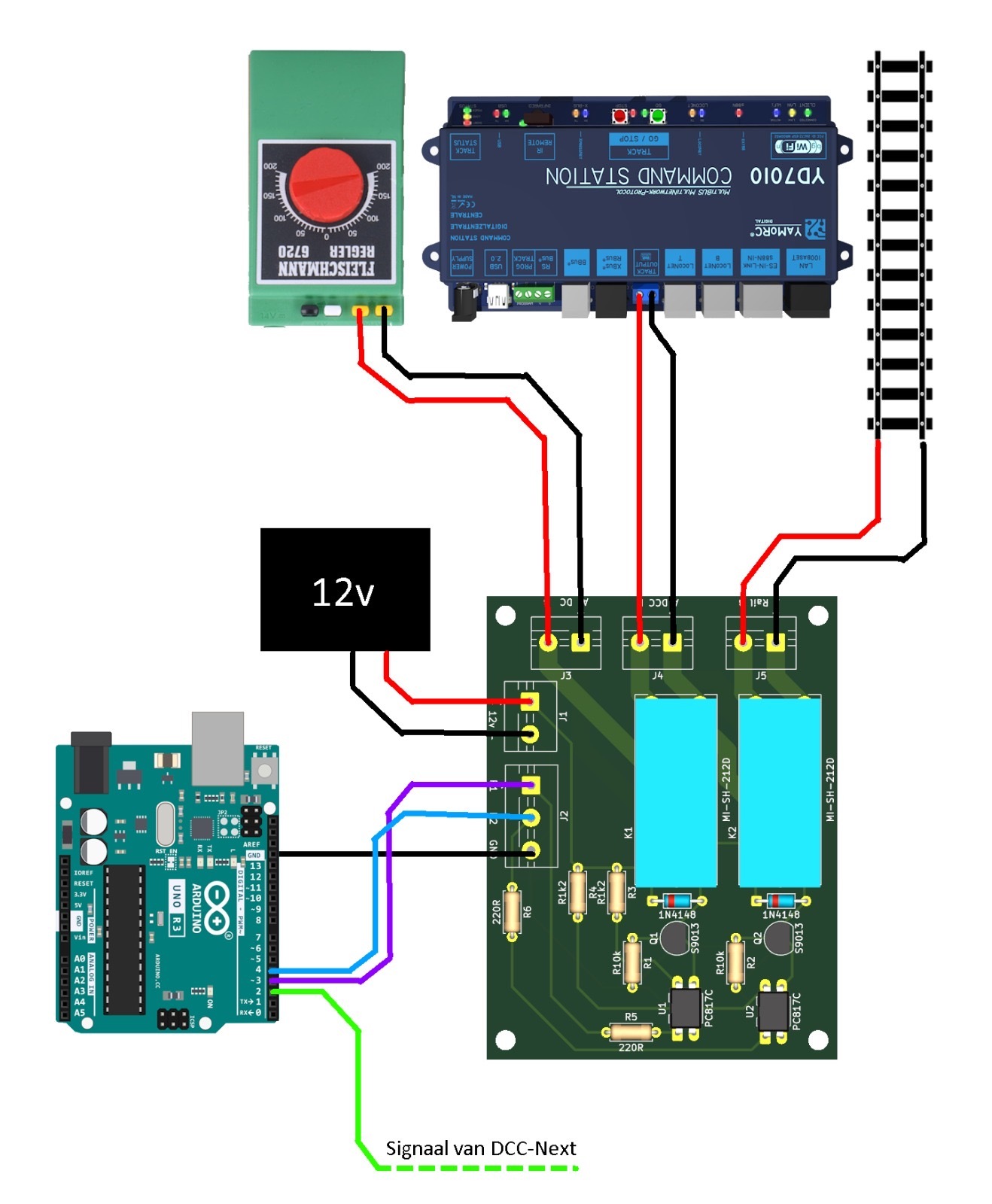 Tenslotte kreeg ik van Sofie - het jongste nieuwe lid van de BMB ModuleBaan - de door haar ontwikkelde elektronische DC/DCC schakeling. Deze moet uiteraard ingebouwd worden.