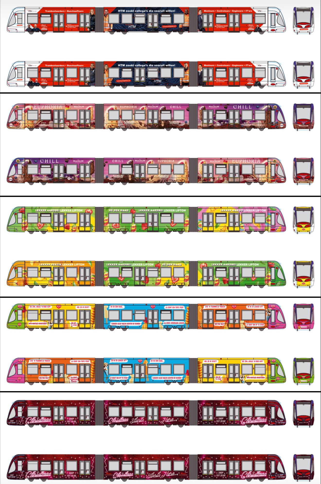 We gaan alle HTM Randstadrail voertuigen uitvoeren met deze zijkanten. Je zal er weinig van zien. Zeker als de trams langs een halte staan maar op de vrije baan is het zichtbaar. Wel